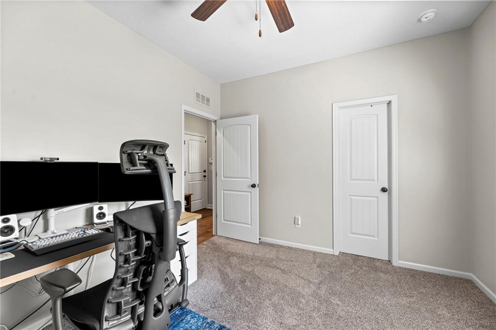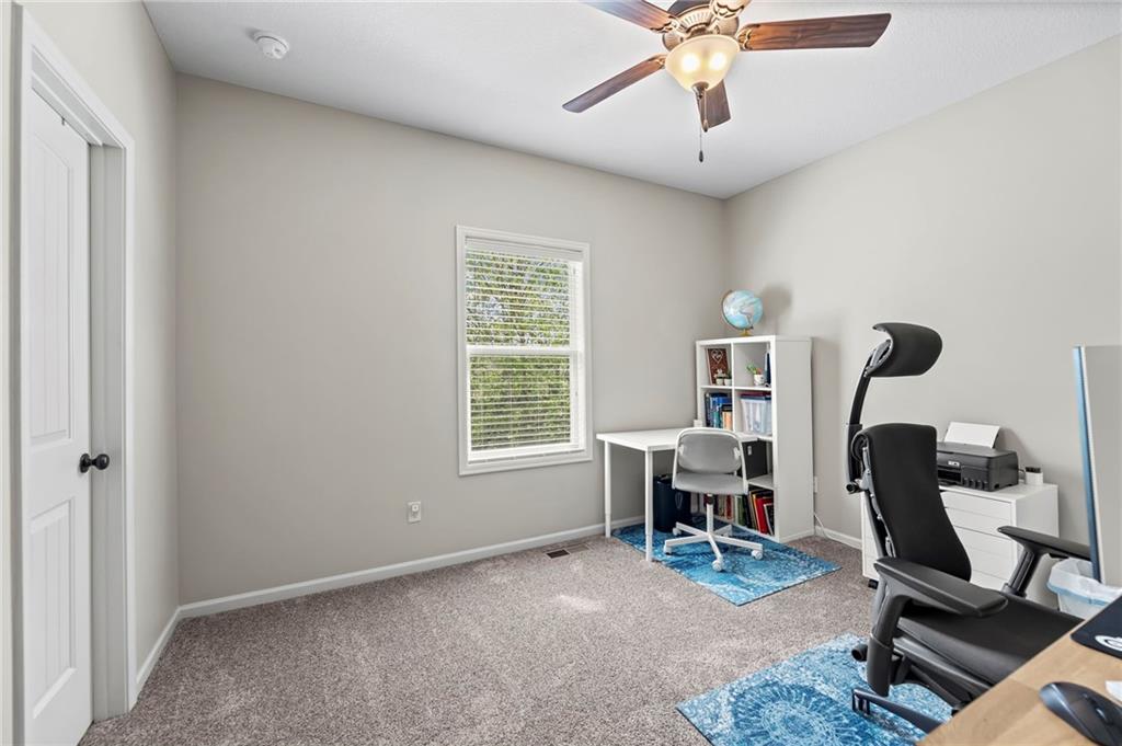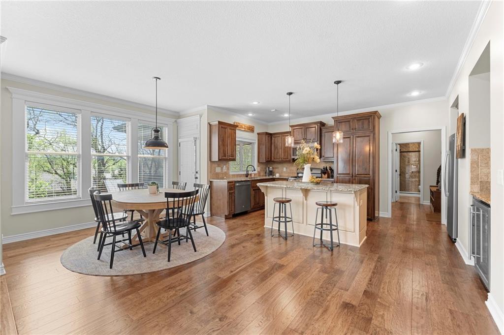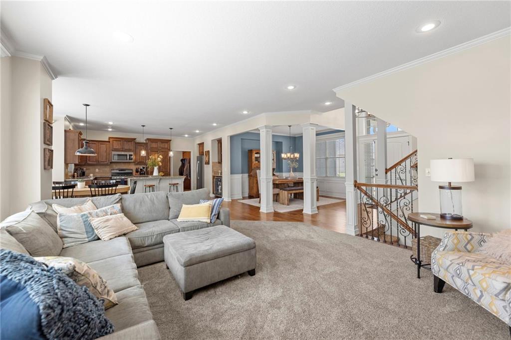 Beautifully maintained by the original owner, this stunning 5-bedroom, 4-bath home in College Meadows offers space, style, and thoughtful design throughout. The open concept layout flows seamlessly from the formal dining room into the inviting living room and well-appointed kitchen, creating an ideal setting for both everyday living and entertaining. The living room is filled with natural light from expansive windows and features a floor-to-ceiling stone gas fireplace with floating shelves. Step outside to the 14x14 screened-in deck overlooking the fenced backyard, complete with stairs leading down to the patio below. The kitchen is equipped with custom cabinetry, granite countertops, a large island, gas range, and a charming coffee bar nook with space for a beverage fridge. A main-level bedroom perfect for a home office or guest suite is conveniently located next to a full bathroom. Upstairs, you’ll find four spacious bedrooms and three full bathrooms. One bedroom features a private ensuite, while bedrooms two and three share a Hollywood bath. The impressive primary suite includes a large tiled shower, tub with tile surround and transom window, double vanity with an oversized framed mirror, and a generous walk-in closet. The walk-out basement offers abundant space and endless potential for future finishing, a home gym, or additional living area. Situated on a beautiful lot backing to a tree line on a quiet street, this home also provides easy highway access. A fantastic opportunity you won’t want to miss!