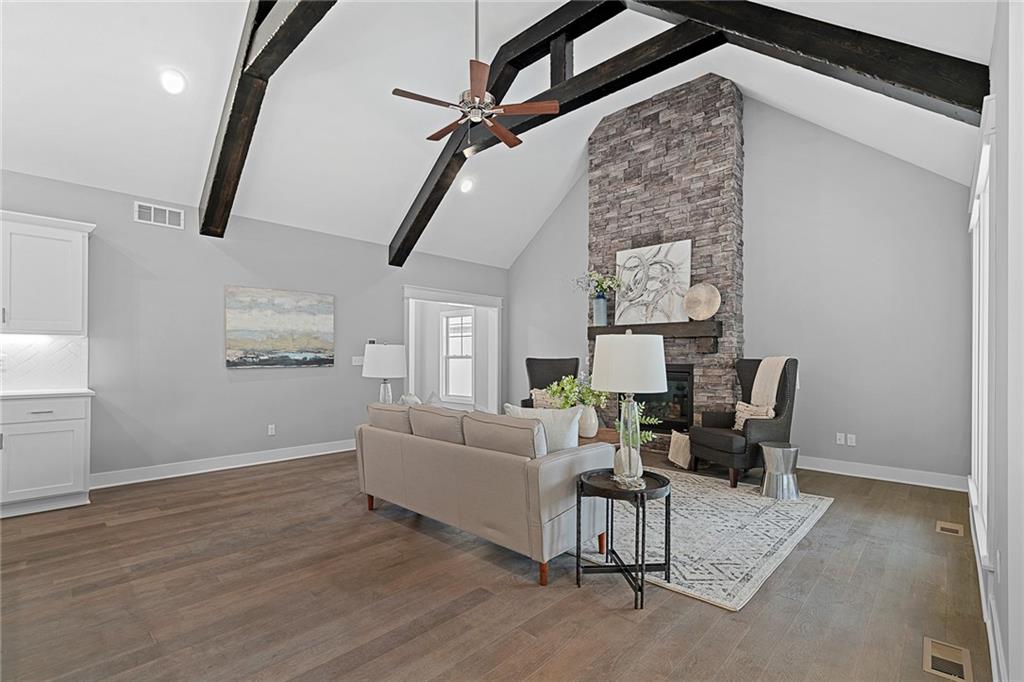 Ever popular Aspen Reverse 1.5 story home by Prieb Homes offers a spacious and open floor plan with impressive details throughout. The soaring vaulted ceilings with stained beams and stunning stonework surrounding the fireplace create a grand first impression as you enter the home. The kitchen features a massive granite center island, perfect for entertaining and providing functionality for day-to-day living. The primary suite offers a relaxing retreat with an adjacent bonus office space and a laundry room with built-in cabinetry. The spa-like primary bath boasts a custom shower with dual shower heads and separate vanities. The finished lower level features a wet bar, two additional bedrooms, and a full bath. Enjoy the serene & large covered 14x12 deck. Room sizes and taxes are estimated, and some features may not be available in this spec home. Please note that the photos provided are of a previously built Aspen Reverse 1.5 spec, and some features may not be included. It's recommended that buyers work with their agent to confirm the details of the home.