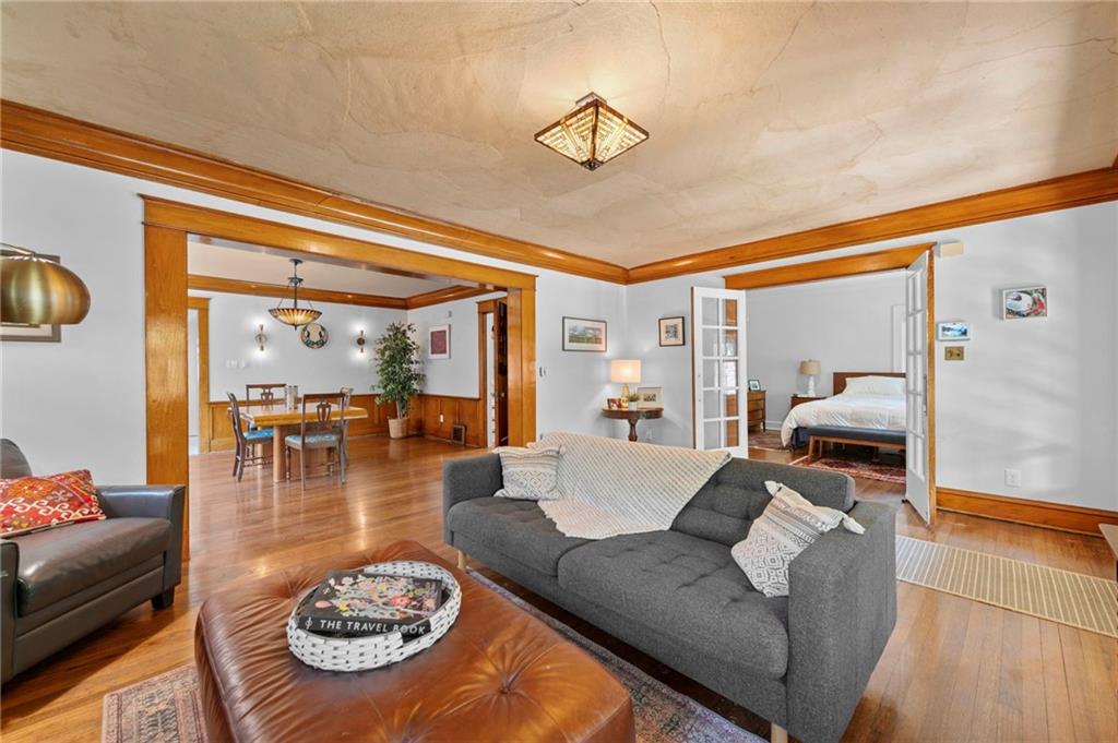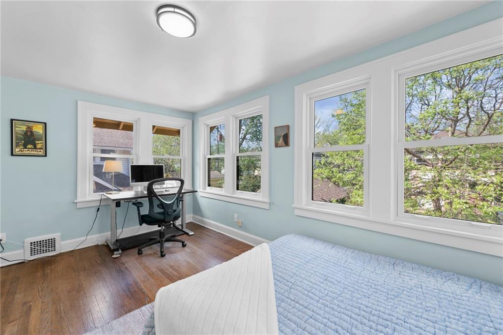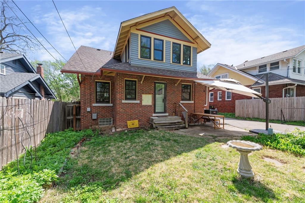 This traditional Brookside home is located on a desirable street with an inviting front porch and tons of charm! The living and dining rooms are generously sized for the area and feature original woodwork and built-ins and beautiful hardwoods throughout. Gorgeous Kitchen has been remodeled with high-end finishes, stainless appliances and features a breakfast room. New roof, newer HVAC, and Renewal by Andersen windows throughout. Large expandable unfinished attic offers significant opportunity to add square footage, including potential for a primary suite (stubbed for plumbing). Unfinished basement is super clean with high ceilings and egress windows. Private drive and one-car garage provide off-street parking. Convenient location with walkability to UMKC and Rockhurst, local restaurants (Earls' Premier is 1 block away), Crestwood and Brookside shops, and the Trolley trail.