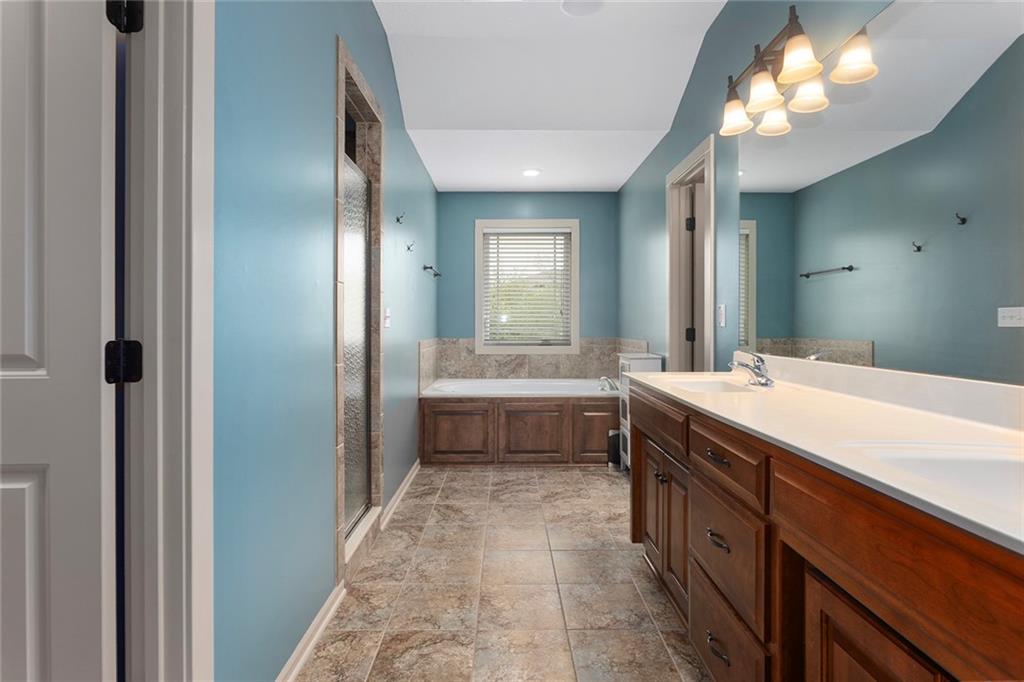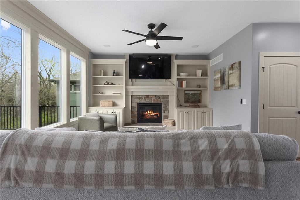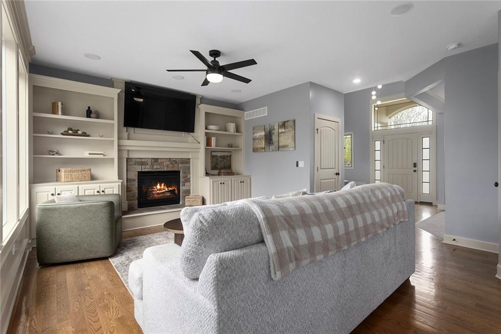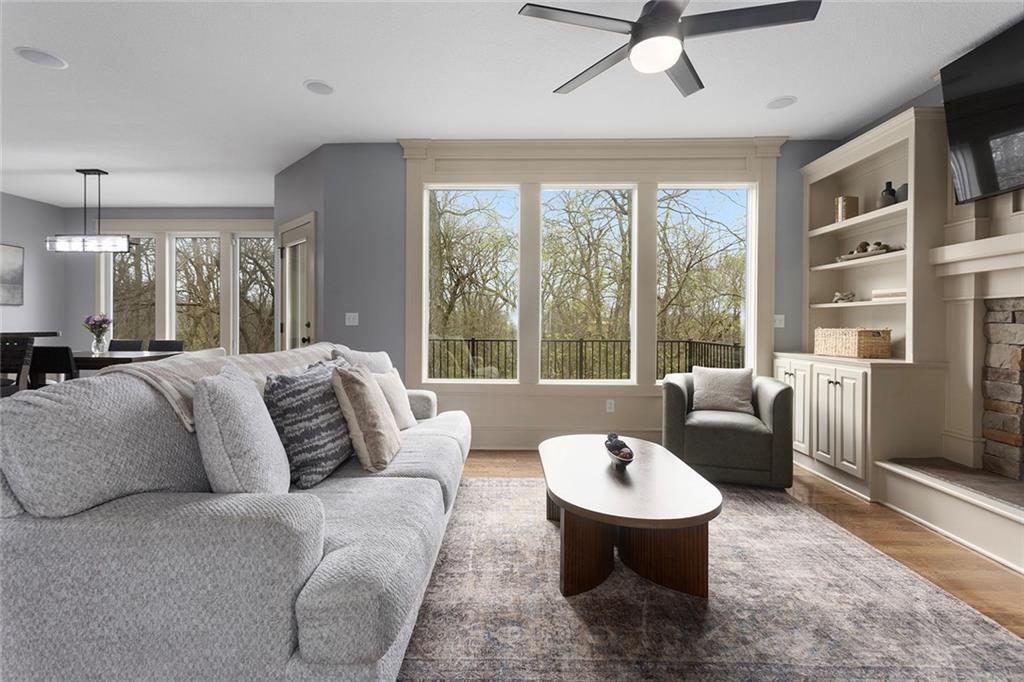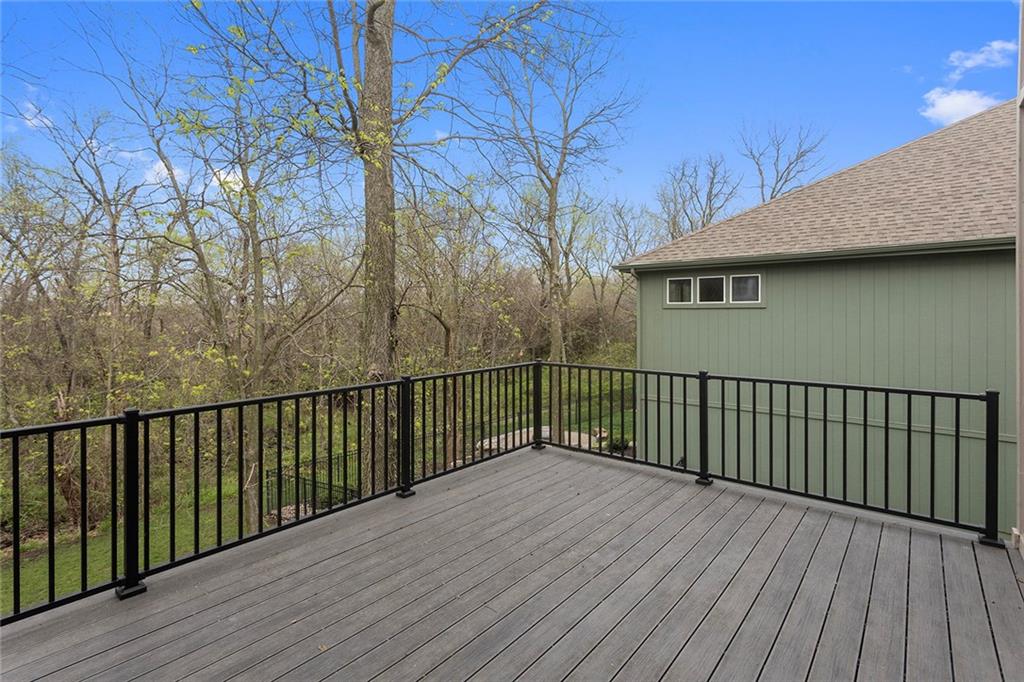 Welcome to this spacious and beautifully appointed two-story home in desirable South Olathe! Offering 5 bedrooms and 3.5 bathrooms, this home combines comfort, functionality, and scenic surroundings. The main level features stunning hard oak wood flooring and an abundance of large windows that fill the space with natural light while showcasing peaceful views of the wooded greenspace behind the home. The inviting living room centers around a cozy fireplace and flows seamlessly into the adjacent kitchen—perfect for both everyday living and entertaining. The kitchen is thoughtfully designed with beautiful cabinetry, granite countertops, and a convenient walk-in pantry. Just off the kitchen, you’ll find a dedicated laundry area for added ease and efficiency. A formal dining room sits at the front of the home, offering a more traditional space for gatherings and special occasions, complete with comfortable carpeting. Upstairs, the bedrooms feature plush carpeting and spacious bathrooms, creating comfortable retreats for family and guests alike. You’re sure to love the finished walkout basement, complete with a 5th bedroom, full bath, and a convenient kitchenette. This space lives like separate quarters—ideal for guests, extended stays, or multi-generational living—and opens directly to the patio, with a composite deck above for even more outdoor enjoyment. Step outside to enjoy the backyard firepit, perfect for relaxing evenings under the stars. Additional upgrades include whole-home sound wiring and programmable exterior holiday lighting for year-round convenience and charm. Don’t miss this opportunity to own a beautiful home on a well-kept lot in a sought-after location!