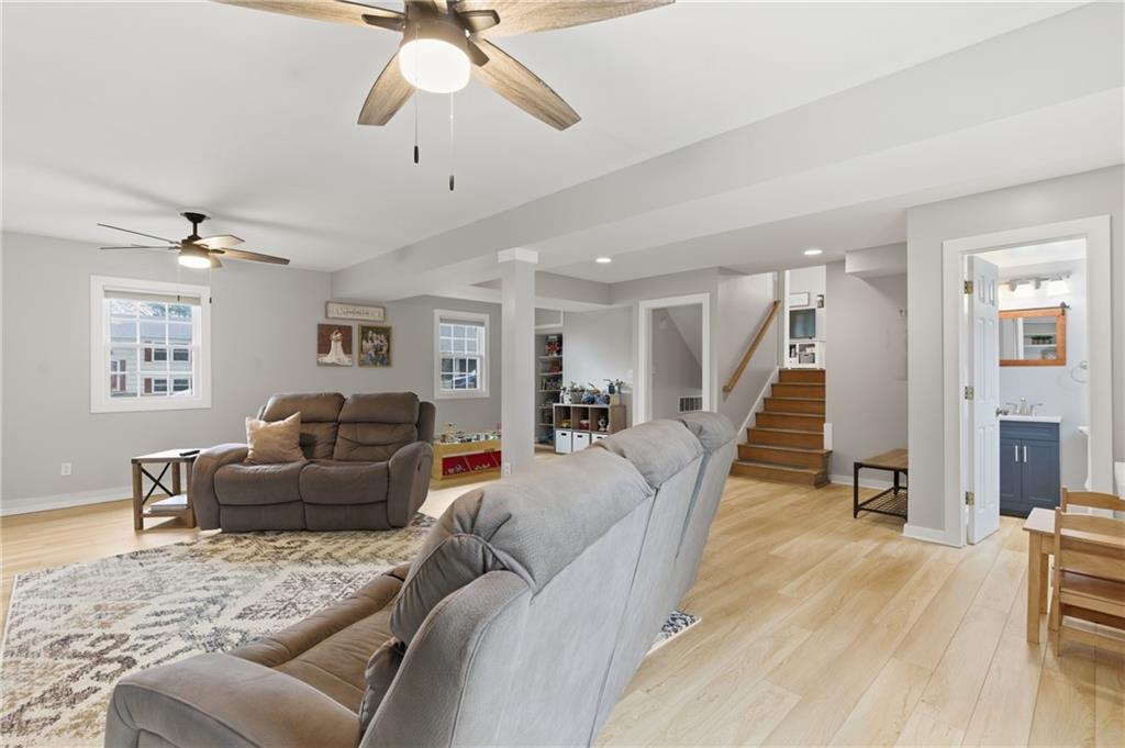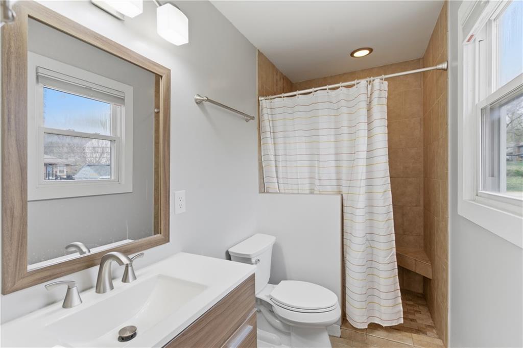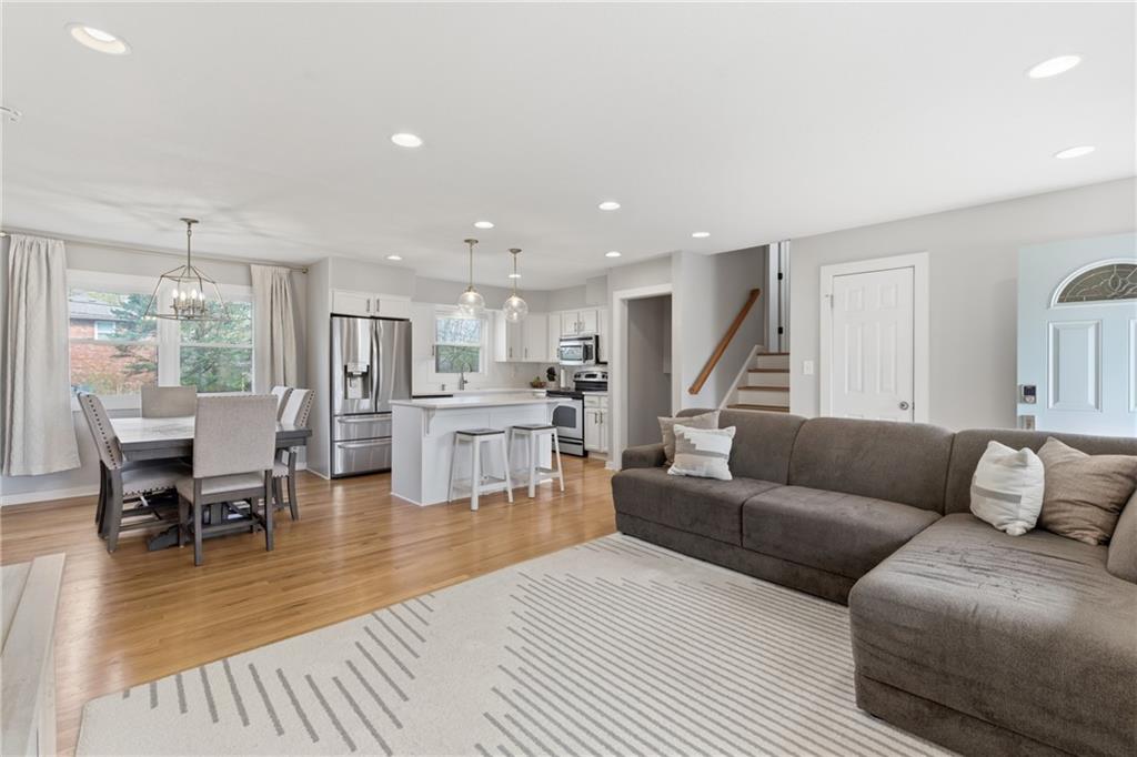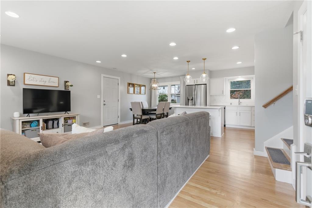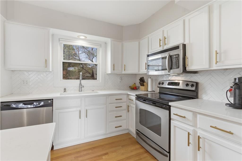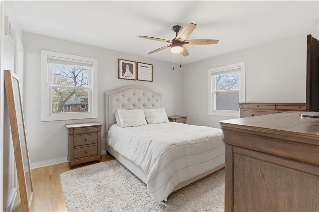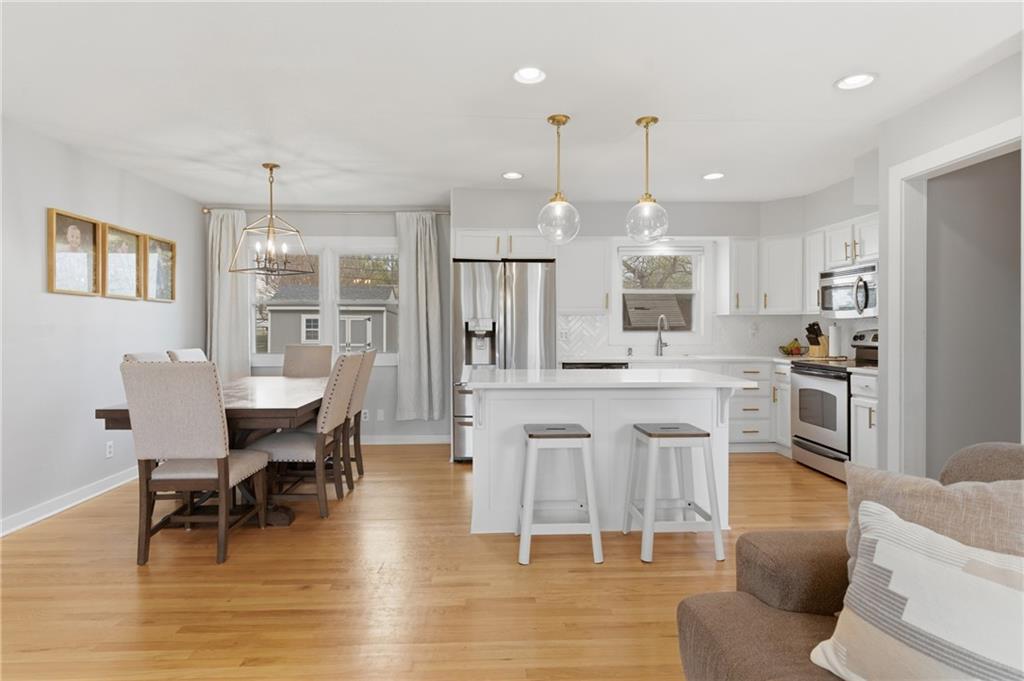 Stunning side-to-side split level home tucked into the beautiful Cherokee Hills neighborhood! The exterior facade gives “house proud” - beautifully landscaped and freshly painted. Step inside to modern open concept living with lovely oak floors and ample natural light to greet you. The modern kitchen showcases white cabinetry, stainless steel appliances and an eat-in island with Quartz countertops. Upstairs, you’ll find well-sized bedrooms, a beautifully updated hall bathroom, and linen storage. The primary bedroom ensuite features a shower-only bathroom with a new modern vanity. Downstairs, the perfect recreation room awaits you. Ready for game day, the space offers built-in cabinets, electric fireplace, ample seating for hosting, a half bathroom and plenty of space for the kids to play. The lower level recreation room walks out to a gorgeous backyard patio with the best vibe.The backyard offers a large shed, play set, and space to grill out under a cozy string light setting. Don’t miss the dedicated laundry, gym, office, and storage spaces available in the sub-basement! Lovingly cared for, this home includes 3 year old HVAC systems, a new sewer line, and radon mitigation. Appliances to stay for the Buyer’s ease! Nestled in the heart of Johnson County, this home offers modern living and surrounded by restaurants, shops, and schools at an unbeatable price tag!