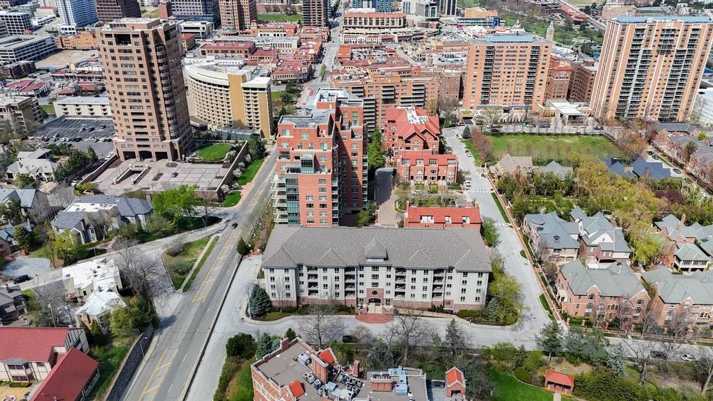 Welcome to this beautifully updated one-bedroom condominium in the highly desirable Plaza Pavilion, where comfort, style, and location come together seamlessly. Nestled in a quiet neighborhood with lush landscaping, this home offers unbeatable proximity to Loose Park and the Country Club Plaza—perfect for enjoying Kansas City’s best shopping, dining, and outdoor spaces. Inside, you’ll find a thoughtfully upgraded interior featuring elegant crown moldings and designer finishes throughout. The living space flows effortlessly into a well-appointed kitchen outfitted with premium Café appliances, offering both functionality and modern appeal. The bedroom is a true retreat, highlighted by a stunning chandelier (included with the sale) and custom drapery from The Shade Store. The fully renovated bathroom showcases a sophisticated design with a walk-in shower, large-format porcelain tile, Kohler fixtures, a quartz countertop, and a rare 18th-century French 1st Empire sink cabinet—blending historic charm with contemporary luxury. Additional upgrades include a Samsung washer and dryer, grass cloth wall coverings, and a Beam central vacuum system for added convenience. Residents of Plaza Pavilion enjoy a welcoming community atmosphere, secure enclosed parking, and a pet-friendly policy with no weight restrictions. A second parking space is available for lease at $100 per month. This is a rare opportunity to own a stylish, move-in-ready condo in one of Kansas City’s most sought-after locations.