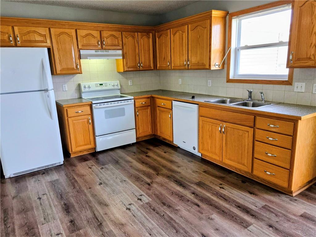 Step right into this 3 bed, 2 bath Ranch style home that blends accessibility and comfort. Walk into a spacious, airy living room featuring large picture windows that flood the home with natural light. All appliances stay in the well appointed kitchen, that is designed for easy meal prep or enjoying nightly dinners. The generously sized primary bedroom features an en-suite bathroom and walk in closet. Additionally, there are two more nicely sized bedrooms and another full bath. (Seller will replace carpet in damaged areas.) Just out back, you'll find a flat fenced in yard perfect for hosting summer bbq's. Plus the brick front and vinyl siding make for great curb appeal with little to no exterior maintenance. (Damaged siding to be repaired by the seller.) Don't let this opportunity for true, one level living slip by. Schedule your showing TODAY!