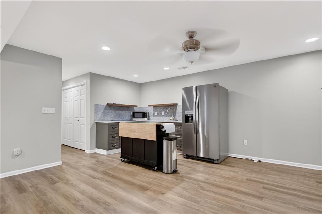 BEAUTIFUL two-story home in the heart of Lenexa offers the perfect blend of space, functionality, and flexibility. The main level welcomes you with an open-concept layout featuring a spacious living room, wall of windows with abundant natural light, and a seamless flow into the family room with fireplace and well-appointed kitchen featuring stainless appliances, pantry, backsplash, gas stove, wood island and granite counters—ideal for both everyday living and entertaining. Upstairs, you’ll find generously sized bedrooms, including a comfortable primary suite with a private bath that includes a soaker tub, double vanity and dual walk in closets. Three additional bedrooms provide versatility for family, guests, or a home office. The fully finished basement adds exceptional value with its own private living quarters—perfect for extended family, guests, or potential rental income. This separate space includes a bedroom, full bathroom, living area with fireplace, full kitchen, dining area and washer/dryer hookup offering both privacy and independence. With its thoughtful layout and multi-generational living potential, this home is designed to meet a variety of lifestyle needs while maintaining comfort and style throughout. Fully fenced yard with trees for privacy and a deck for entertaining. Close to the Lenexa City Center offering a variety of dining and entertainment.