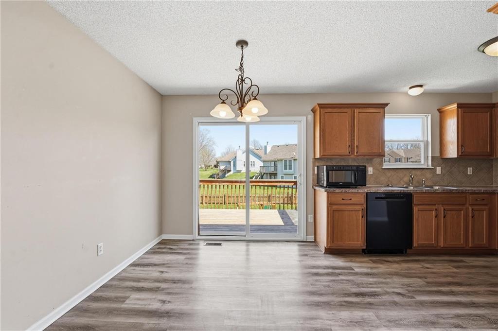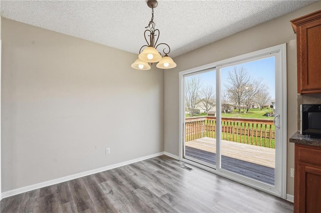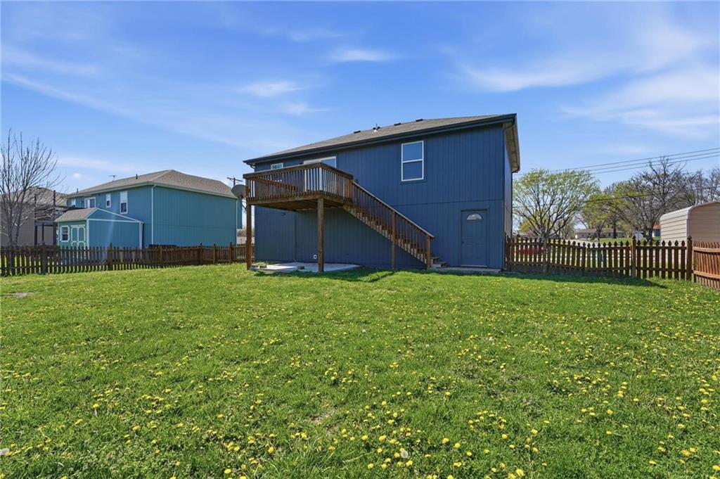 Well-maintained split-level home located in Kearney School District, offering 3 bedrooms and 2 full bathrooms with a functional and inviting layout. The main living area features updated flooring, abundant natural light, and an open flow into the eat-in kitchen, creating an ideal setting for everyday living and entertaining. The kitchen includes ample cabinetry, storage, with convenient access to the deck and backyard. The primary bedroom offers comfortable space along with a walk-in closet, while two additional bedrooms provide flexibility for family, guests, or a home office. The finished lower level includes a third bedroom and a full bathroom, perfect for added privacy or multi-generational living, along with a utility and laundry area. Step outside to enjoy the fenced backyard, ideal for pets, play, or outdoor gatherings, along with an elevated deck overlooking the yard. Additional highlights include a two-car garage and a newer water heater for added peace of mind.