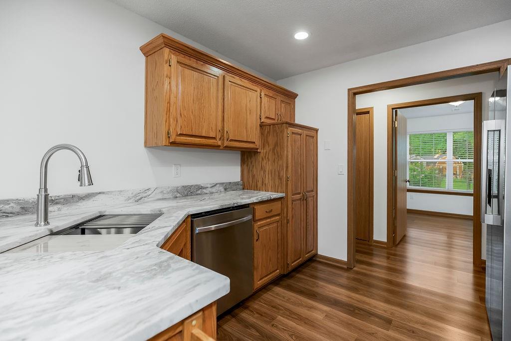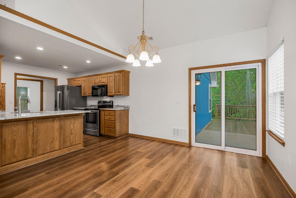 Welcome home to this super clean, beautiful and spacious open concept home located on a quiet cul-de-sac in Odessa. This home boasts 3 beds, 2 baths, new quartz counter tops, new paint, vaulted ceiling and has a large deck with fenced backyard. This property features a bright and open floor plan with abundant natural light throughout. Great lot size, so you don't have to worry about living right on top of your neighbors. Easy walk to Chestnut Park and quick access to I-70 Hwy and 20 minutes from Blue Springs. All appliances stay!