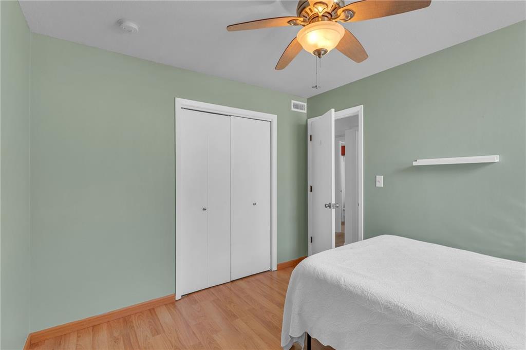 Located a short distance west of KU in the desirable West Meadows Condominiums complex is this 2-bedroom, 2-bathroom condo. Conveniently located on the bus route, this property is nicely tucked back in the northernmost building in the complex. A COVERED parking space is included with this offering. Stainless steel appliances included, plus the washer and dryer. The living area has tiled floors and a stone fireplace. The sunroom has tile floors and offers an abundance of natural light. Primary suite with attached bathroom.HOA covers exterior building(studs out) maintenance, lawn care, snow removal, and access to the swimming pool. You keep your insurance costs low as you only need to insure from the walls in (studs in)!