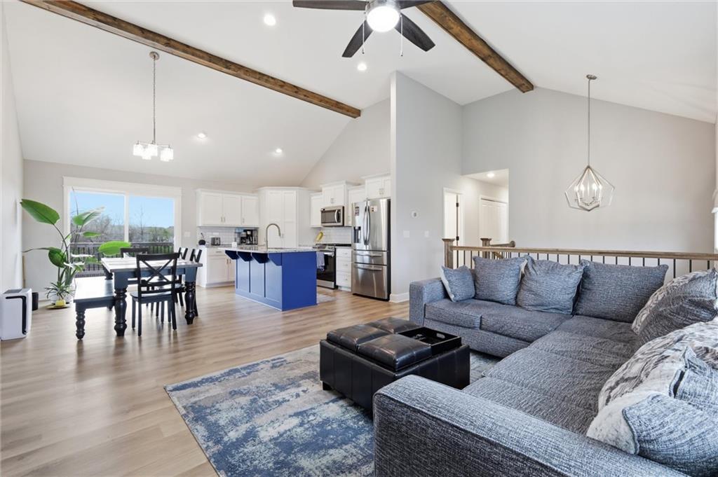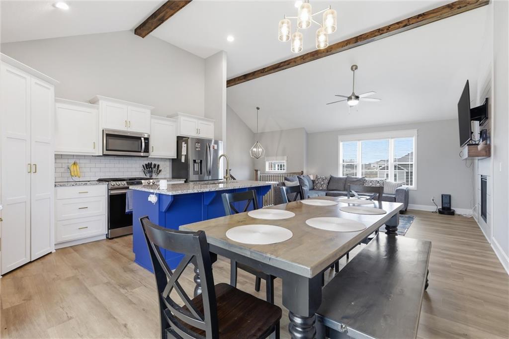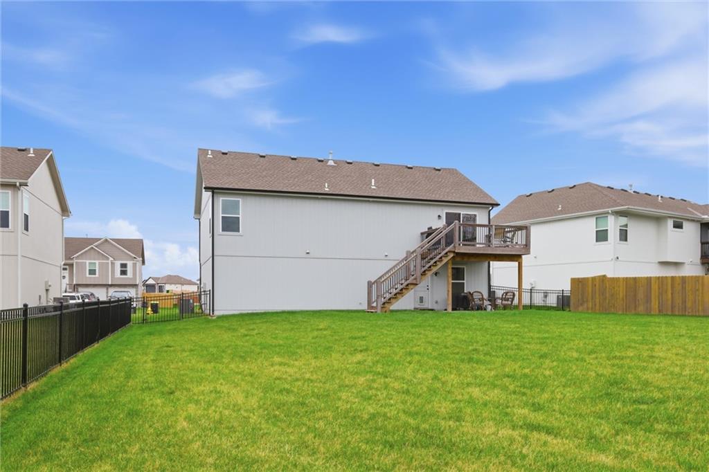 Say "hello" to Copper Creek in Peculiar MO! Turn-key ready, you'll find this 4 bedroom 3 full bathroom home checks all the boxes. This almost 1800 sq ft, three year old home is BETTER THAN NEW with a lower price and OVER $20,000 in upgrades that don't come standard! Meticulously well-maintained, three of the four bedrooms have never even been slept in. Upgrades include; durable and beautiful LVP throughout the house, gas stove, upgraded fixtures and pulls, patio under the deck, fully fenced HUGE yard with zoned sprinkler system, cedar shutters and more! So much space inside and out make this home perfect for getting together with family and friends. Featuring an open living space upstairs; kitchen with corner pantry, granite counters, ss appliances & island that opens to the great room with soaring ceilings and a gas fireplace, convenient laundry on the main floor, large primary suite with dual sinks and a walk-in closet. The lower level has a fourth bedroom, a full bath and a family room with a wet bar. Walk out onto a nice patio and take in the huge backyard that's ideal for adding an epic garden or a pool or BOTH! So much opportunity here. Extra large garage is perfect for your cars & toys and has an EV charging port too. Copper Creek subdivision offers walking trails and playgrounds, easy access to schools and highways. Come see what Peculiar MO has to offer! WELCOME HOME!