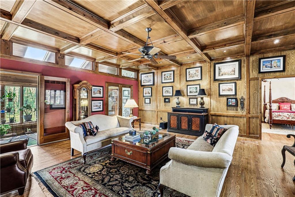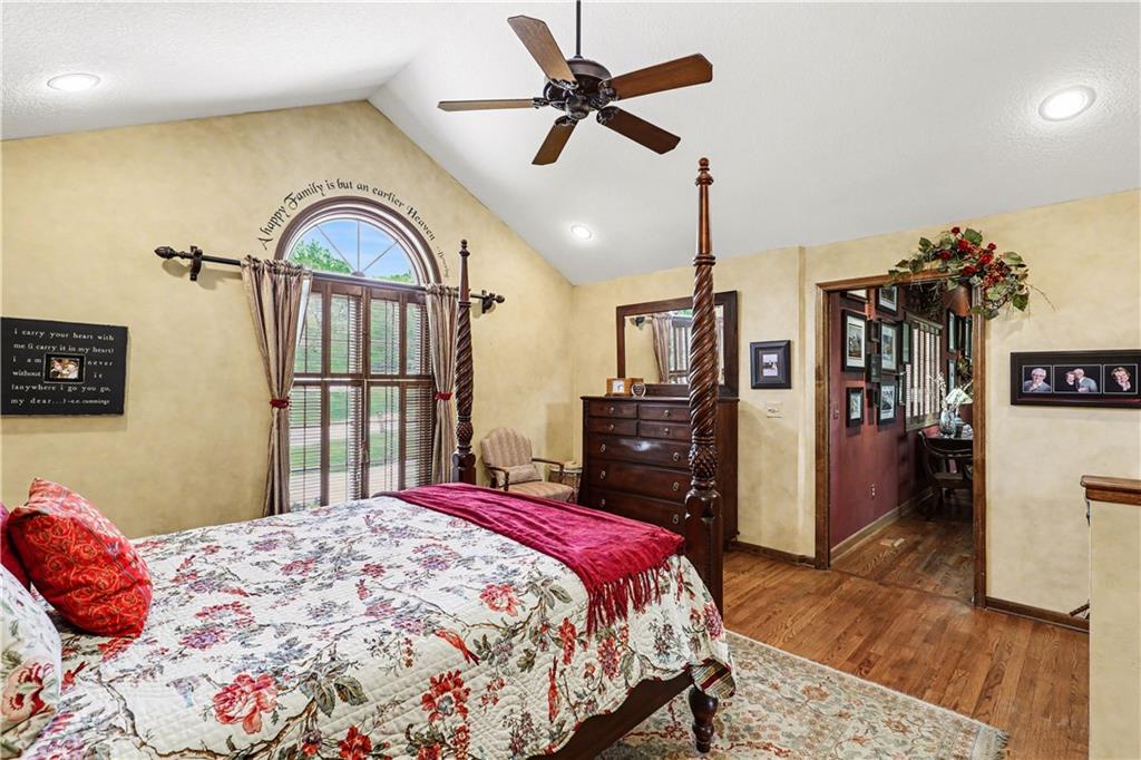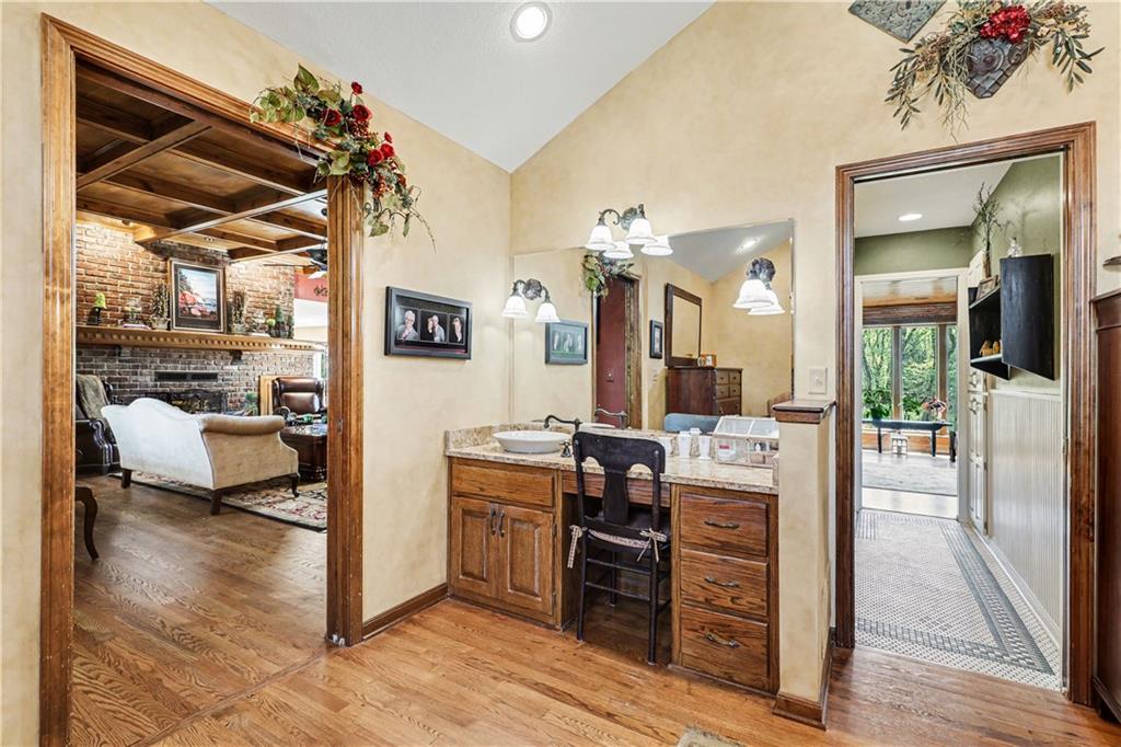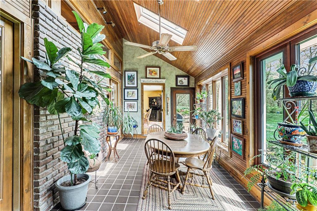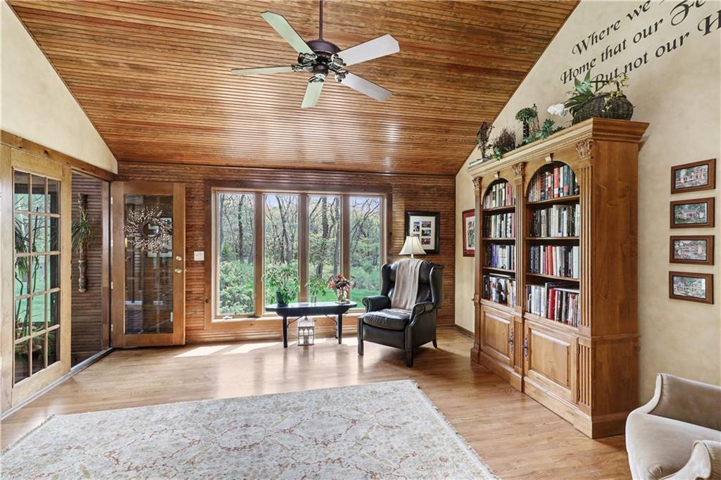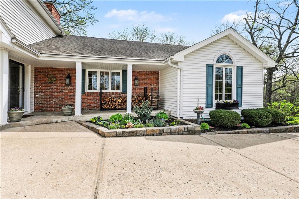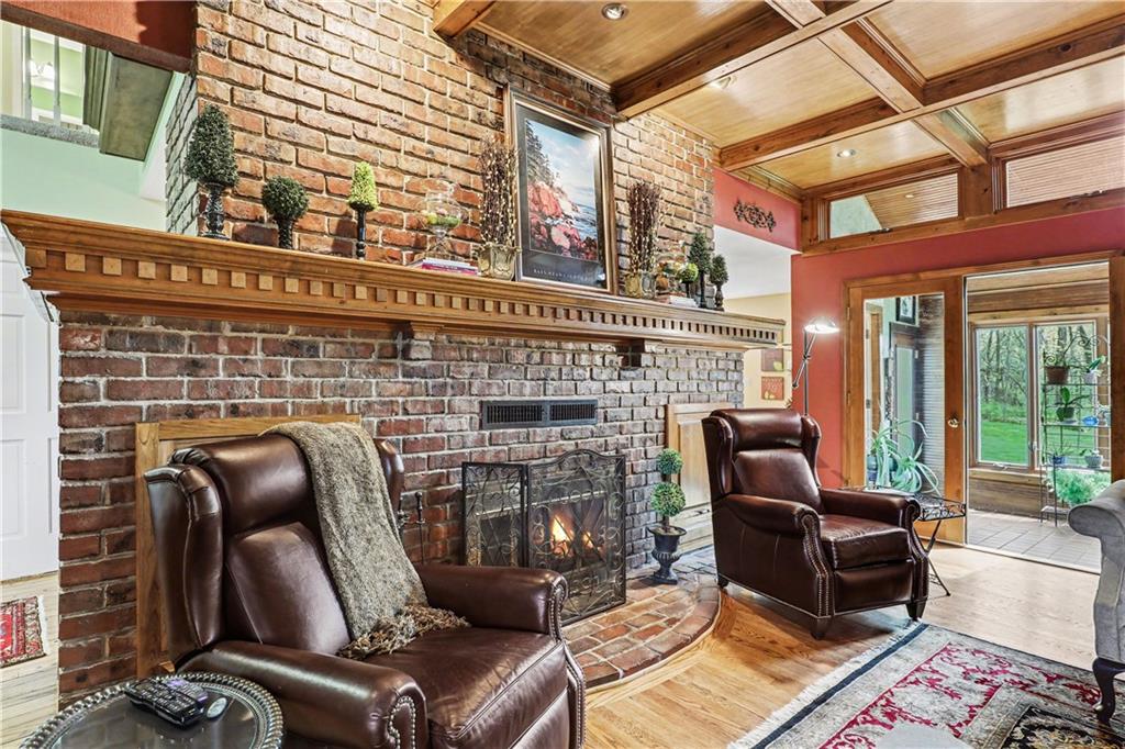 Welcome to this stunning 1.5-story home, perfectly positioned on a beautifully landscaped, tree-lined lot. Offering just over 3,000 square feet with an oversized two-car garage, this one-owner residence showcases thoughtful design, timeless character, and pride of ownership throughout. From the moment you step inside, you’re greeted by soaring ceilings and a sense of warmth and individuality. The expansive great room is truly the heart of the home, featuring striking beamed ceilings and a floor-to-ceiling brick wood-burning fireplace. Double doors lead to a sunroom that overlooks the private backyard—an ideal spot to relax and take in the peaceful surroundings. The open-concept kitchen is both functional and stylish, complete with an oversized island, double ovens, generous dining area, and sliding glass doors that open to a patio surrounded by mature trees and vibrant landscaping—perfect for entertaining or quiet evenings outdoors. Just off the kitchen, you’ll find a well-appointed mudroom, laundry room with sink, additional refrigerator, and a spacious walk-in pantry. The main-level primary suite offers comfort and convenience, featuring a walk-in closet, en-suite bath, and direct access to a versatile office or sitting room. Upstairs, a charming loft overlooks the living space below and leads to two spacious bedrooms, each with walk-in closets, and a full bath. The massive unfinished walk-out basement provides endless possibilities for future expansion, storage, or customization to fit your lifestyle. Lovingly maintained and thoughtfully designed, this exceptional home is truly one-of-a-kind. Don’t miss your opportunity to make it yours—homes like this rarely come along.