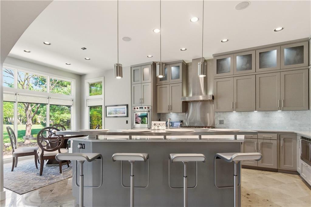 Highly sought-after Highlands Creek neighborhood in Leawood, KS! This exceptional estate offers over 5,600 square feet of thoughtfully designed living space, featuring 5 bedrooms, 4 full baths, and 3 half baths. From the moment you step inside, you’ll notice the elevated craftsmanship and luxury finishes throughout. The stunning primary suite is a true retreat, complete with its own fireplace, a spa-like bath featuring Ann Sacks custom tile, a stand alone Kohler soaking tub, and a recently updated, custom-designed closet. A second fireplace enhances the serene atmosphere of this private oasis. The gourmet kitchen is equipped for the most discerning chef, showcasing high-end appliances including Wolf, Sub-Zero, Miele, along with a newly custom-designed pantry for optimal organization and style. Additional highlights include beautiful limestone flooring, whole-home surround sound by Bowers & Wilkins, a tankless water heater, and multiple zoned HVAC systems for maximum comfort and efficiency. Every second-floor bedroom features its own private bath and walk-in closet, offering both comfort and convenience. The daylight lower level provides incredible versatility, with a bedroom currently used as a golfer’s putting room—perfect for a home office or flex space. Designed for entertaining, the media room boasts a wet bar with Asko dishwasher and SubZero beverage fridge, surround sound, and ample space for gatherings. An unfinished area of the basement is currently utilized as a home gym, offering even more potential for customization. Step outside to enjoy extensive landscaping updates, a brand-new driveway and heated garage with epoxy flooring—perfect for year-round use. This one-of-a-kind property combines luxury, function, and lifestyle in one of Leawood’s premier neighborhoods.