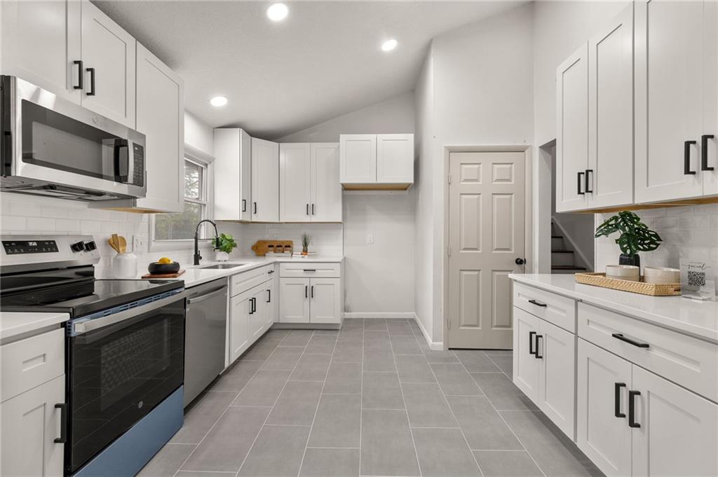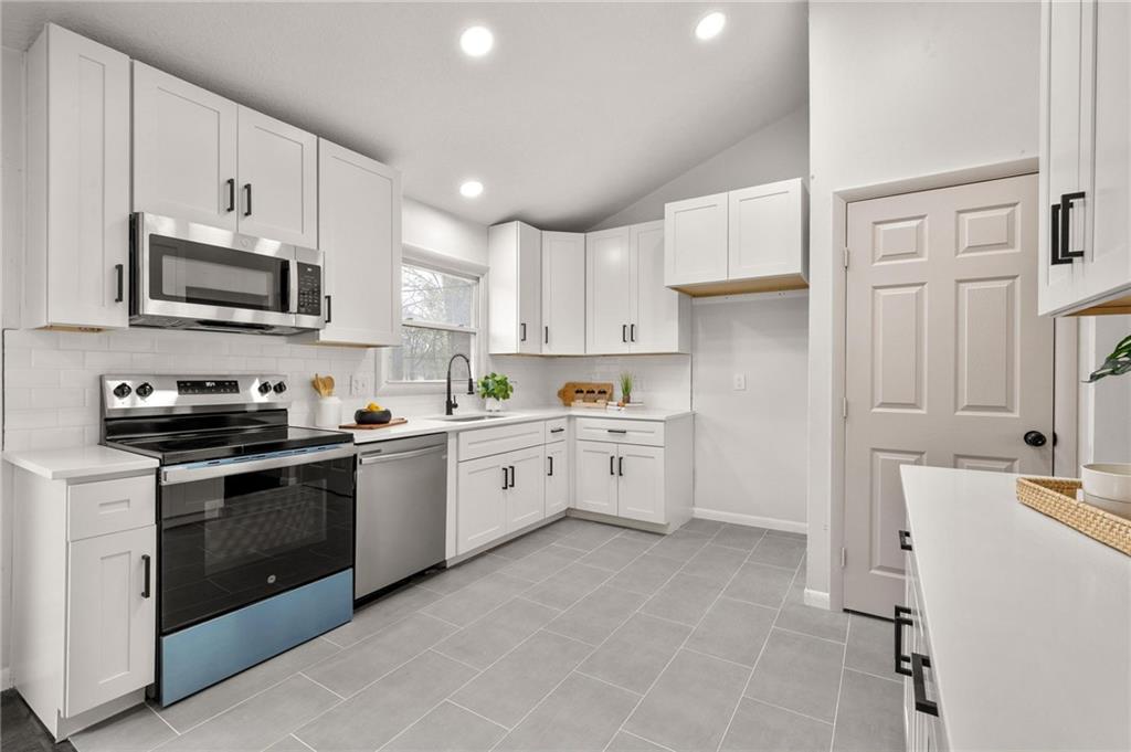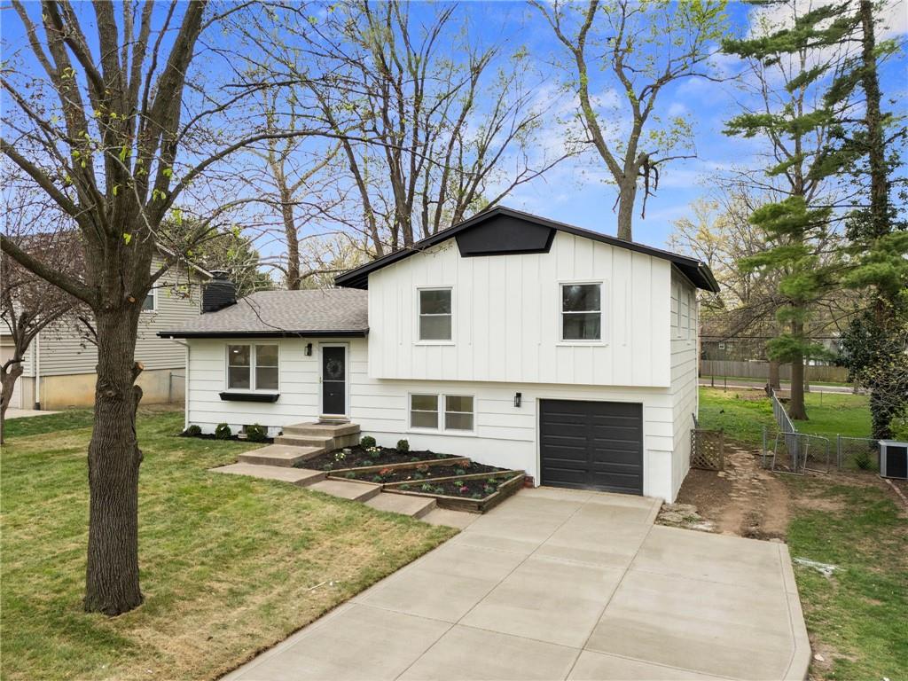Welcome to 8813 W 90th Terrace, a fully renovated side split-level home located just off Antioch Rd in Overland Park. Perfectly positioned to enjoy everything Johnson Country has to offer, these features might make you never want to leave. Brand new flooring, cabinets, countertops and fresh paint throughout give this home new life. The main living area is filled with natural light from large windows and anchored by a cozy fireplace. Upstairs you will find 3 bedrooms and 2 full bathrooms, including an ensuite. The lower level has a space with garage access, backyard access, and basement access, a truly multifunctional room for whatever fits your needs! Downstairs you will find the fourth bedroom, third full bathroom, and cozy carpeted entertainment room in the newly finished basement. Step outside to a nearly 1/3 acre lot recognized in the fully fenced backyard, perfect for kids and pets alike! Peace of mind comes easy with a new roof, tying a bow to this move-in ready home.