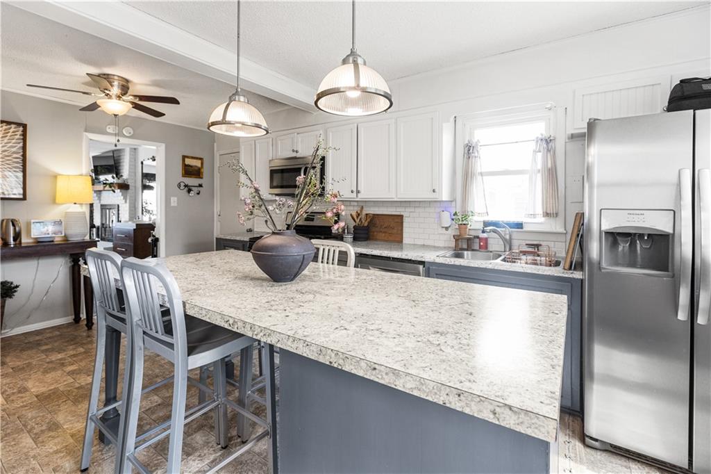 Charming & updated ranch with tons of updates! As soon as you enter the home you are greeted by beautiful hardwood floors and tons of natural light. The living room is a nice space to relax and unwind and leads into updated kitchen with a large island and additional seating (all kitchen appliances stay)! The other side of the home features a cute half bathroom, 3 great size bedrooms and an updated full bathroom. The basement is clean & waiting for the right person to make it a finished space. Out back is a recently refinished deck and gazebo that are awesome for entertaining & lead to the great sized fenced yard. Other bonus features include a newer roof (2020), newer windows, a full dry basement system, fresh exterior paint, and an XL driveway & garage (30' x 15'). This one is ready for someone to move in and enjoy!