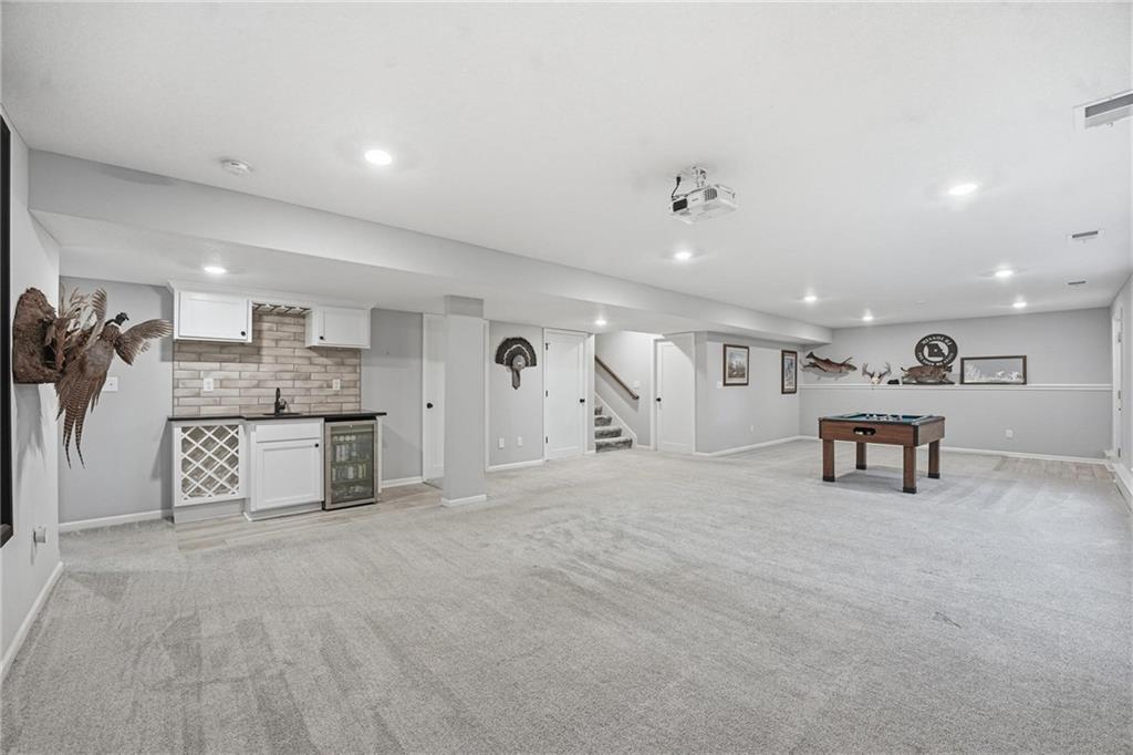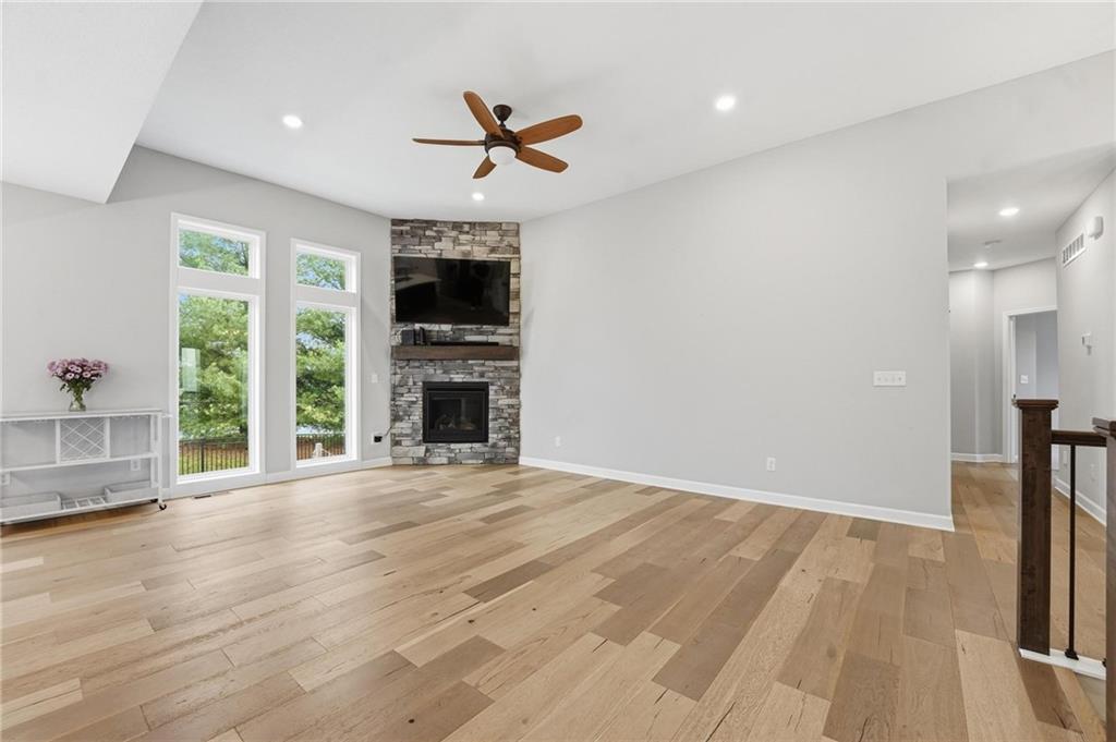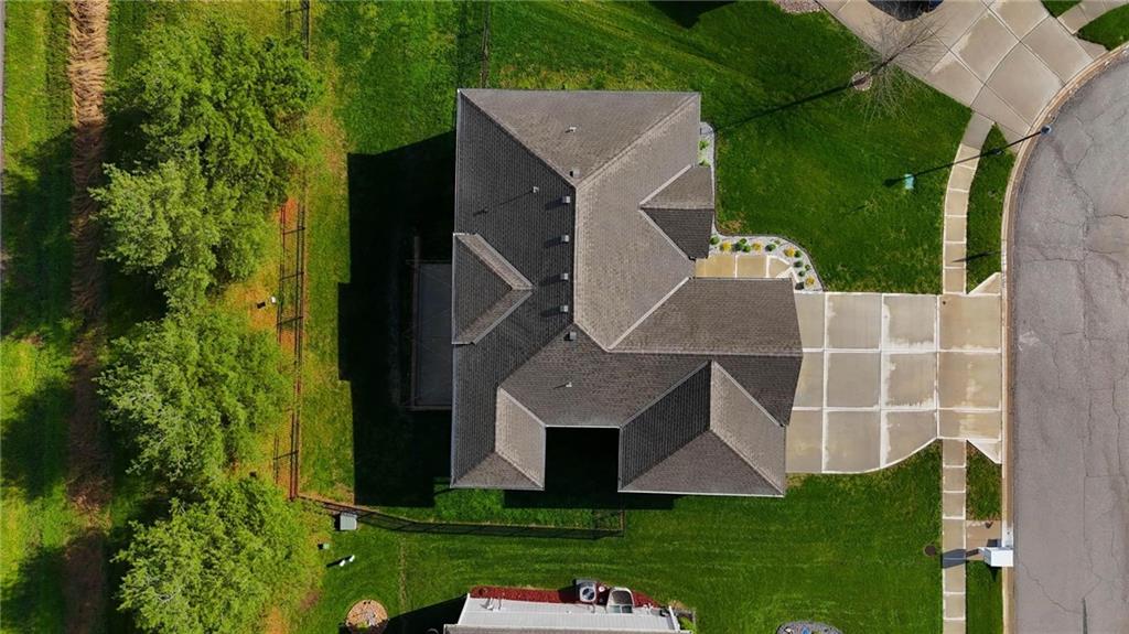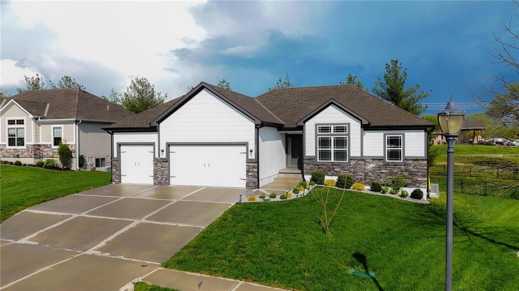 Welcome to 2209 Greenfield Court, a move-in-ready 5-bedroom home in The Meadows at Greenfield that allows you to skip the typical new construction to-do list and start enjoying your home from day one. As you walk in, you are greeted by an open layout filled with natural light and clean, modern finishes. The living room centers around a stone fireplace and flows seamlessly into the kitchen with granite counters, an island, and pantry, giving you a space that works just as well for everyday living as it does for hosting. Your main level primary suite provides a private retreat with a walk-in closet and a fully tiled walk-in shower. Two additional bedrooms and laundry on the main level give you the convenience of single-level living. The finished walk-out basement gives you flexibility with a large entertainment space, wet bar, projector setup, two additional bedrooms, a full bath, plus storage and a workshop area. Whether you need space for guests, hobbies, or everyday living, you have it here. Outside, you get more than just a backyard. You have a newly installed wrought iron fence that keeps the space open while adding security. You can enjoy evenings on the patio and fire pit area, and the added concrete pad gives you flexibility for a shed or additional use. The professionally landscaped flower beds with stone borders, decorative white and blue rock, and landscape lighting create a clean, finished look, while the color programmable permanent soffit lighting allows you to customize the exterior year-round. Inside and out, the details have already been handled for you, including blinds, a new fence and garage door openers saving you time and additional expense after closing. Located on a quiet cul-de-sac in a neighborhood with a community pool, walking trails, and fishing ponds, you also have convenient access to schools, parks, and highways.