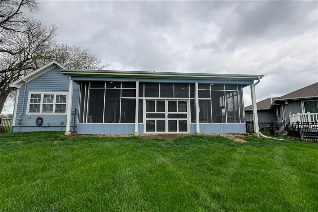 Come check out this beautiful maintained True Ranch that sits on the 1st corner lot in the Subdivision offering an open and inviting floor plan perfect for everyday living and entertaining. It has 3 bedrooms and 3 FULL bathrooms w/ a LARGE unfinished basement. All 3 bedrooms on main level, including a secondary ensuite. The primary suit has a closet the length of the room with built in shelves. Laundry room is right outside primary bedroom making this home, main level living! The open-concept kitchen features abundant counter space, appliances tht stay, and a seamless flow into the dining area—perfect for cooking, entertaining, or simply enjoying everyday life. Step out to your oversized sunroom—perfect for grilling, relaxing, or soaking in a quiet evening view. The large unfinished basement is ideal for creating your perfect space or just for storage. Thoughtful updates throughout the home include the new Sunroom, Fence, Roof, Carpet and hot water heater, Fresh paint inside and outside. Lots of space to enjoy, come check it out. This home is move-in ready and waiting for you! Located in a desirable Raymore neighborhood, Enjoy easy access to walking trails, highway access, shopping and Restaurants. Open houses will be available.