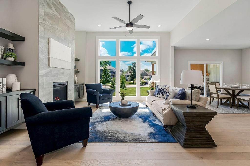 The Kylee by New Mark Homes is Stonebridge Villas newest Model Home! This maintenance provided community by Rodrock Development is now showing this fully furnished, reverse 1.5 story, 4 bedroom, 3 bath home. This plan offers one level living at its finest with the primary bedroom and additional office or bedroom located on the main level. The finished, walk out, lower level offers 2 more bedrooms, a recreation room, wet bar, and additional unfinished space for storage. The deck offers sunset views, a privacy wall and composite finish. This home includes a sprinkler system, upgraded ceramic tile, upgraded light fixtures, gas cooktop with hood, an enlarged master shower, cabinet hardware upgrades, granite counter tops and stainless steel appliances. Prairie Creek Elementary 0.6 mi. Heritage Park 1.2 mi. Hy-Vee Grocery (151st St) 2.0 mi. Stonebridge Clubhouse & Pools within community. I-35 access 3 mi. 169 hwy 2 mi. Bluehawk Shopping 5 mi and Arbor Creek Shopping 2 mi. **Photos are of a previous model. Finishes and upgrades may vary. Please ask onsite agent for more details.**