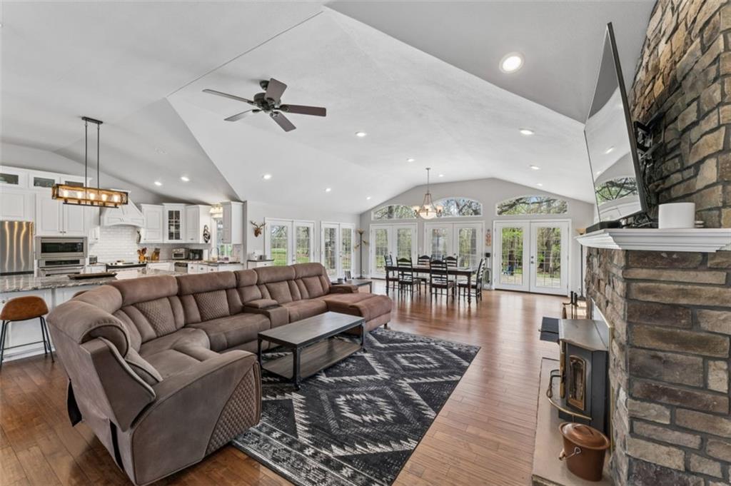 Welcome to 14441 Highway U, Cross Timbers, MO 65634, a beautifully maintained 3-bedroom, 3-bath home with over 3,700 sq ft, perfectly positioned on 20 scenic acres of mixed open land and mature woods. This is where modern comfort meets rural independence. From the moment you arrive, the oversized driveway and attached two-car garage with workshop space set the tone for functionality and scale. Step inside to discover a bright, open layout featuring quartz countertops, stainless steel appliances, and warm hardwood flooring, all anchored by a cozy living room fireplace that creates the perfect gathering space. The heart of the home flows seamlessly into a stunning dining area wrapped in windows, flooding the space with natural light and offering uninterrupted views of your private land. Just beyond, step out onto the expansive deck, where an above-ground pool with electric heater and outdoor entertaining space create the ultimate setting for summer nights and weekend gatherings. The newly finished basement (2023) adds incredible flexibility with an additional bedroom and full bathroom, making it ideal for guests, extended family, or multi-generational living. Outside is where this property truly separates itself. Enjoy your own private pond, wooded acreage with established trails for ATV riding and hiking, and two deer stands, making this a dream setup for hunting and outdoor enthusiasts. A dedicated shooting range further enhances the recreational appeal. For those seeking versatility and income potential, the 12x36 Amish-built log cabin with heat, AC, and pellet stove offers the perfect guest retreat, Airbnb opportunity, or private office space. Located on a paved road in the peaceful Cross Timbers area, this property offers the privacy buyers crave without sacrificing accessibility. If you’ve been searching for a Missouri acreage home with land, privacy, hunting, and modern upgrades. This is it. Optionally comes fully furnished.