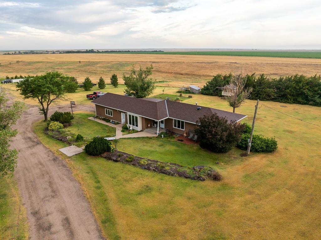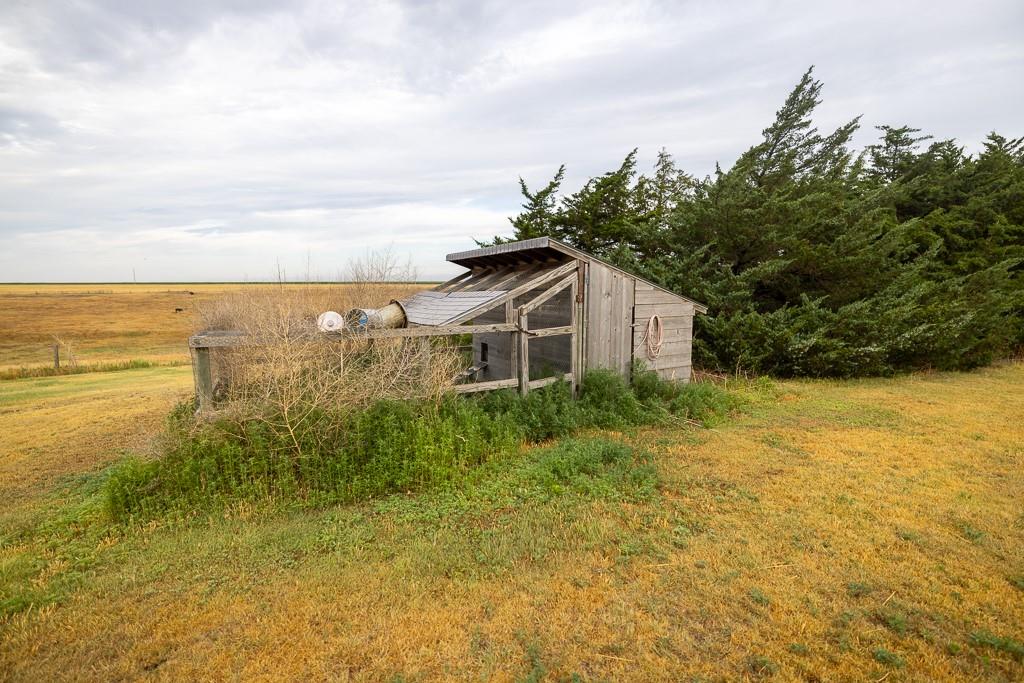 This beautiful 48 +/- acre property brings a lot to the table! Located just west of the golf course outside of Hoxie, KS, it features a sizable 5 bed, 2 bath ranch farmhouse. You can watch the sun rise from your front porch. The main floor includes 2 bedrooms, 1 bathroom, a generous living area and kitchen, large dining room, and a laundry/mudroom off of the oversized 2 car garage. The full finished basement includes 3 bedrooms, a full bathroom, utility closet, a large living space, and lots of storage. The property also includes an additional 864 square foot outbuilding that is half garage and half climate controlled entertaining space, perfect for a mancave. A chicken coop and children's playhouse make up the remaining structures on the property. The property itself is beautiful and loaded with opportunity. A large established windbreak surrounds the north and west sides of the home, offering the much needed protection from the Kansas winds. Additionally, oak and cottonwood trees are strategically placed throughout the farm, giving it a charming, park-like feel. There are several water hydrants sprinkled throughout the 5 acre homesite that would allow several locations for a large garden. The remaining 43 acres are made up of fenced grass that are perfect for your horses, steers, or other livestock options. There’s a good well and heated water tank just off of the corral.