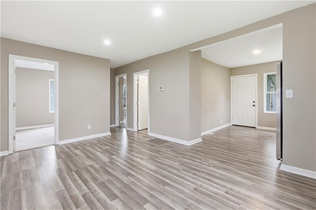 Cute bungalow on a large, fenced corner lot! Large living room space with big bright windows overlook the covered, spacious front porch. Renovated throughout, this kitchen has plenty of counter/cabinet space with updated appliances and counters, laminate floors! Separate laundry room off the kitchen. Good sized, carpeted bedrooms with attached full bath off the primary bedroom. Gorgeous shower! Hall bath with standup shower off the living room. HUGE yard with almost .5 acre that goes beyond the tree line. Clear it and you can have even more space. Fenced front yard gives room for the pets to roam away from the street. Close to highway access!