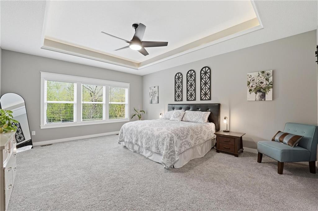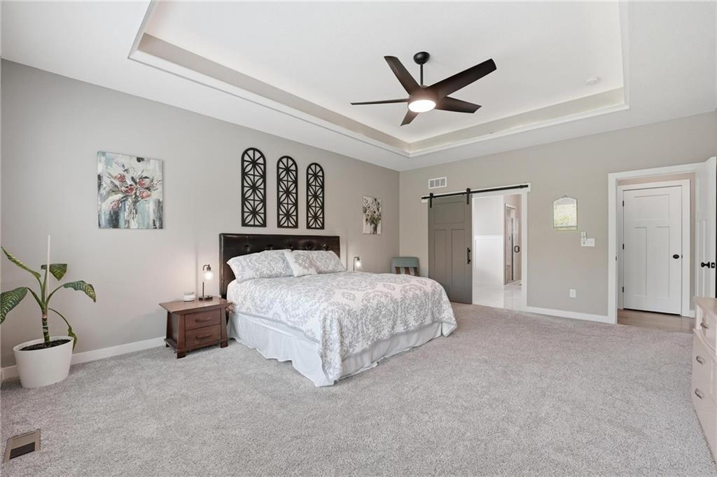 This Integrity Homes, Audrey 1.5 story plan is located on one of the best lots in the subdivision and is only 2+ years old. This home has it all, the floorplan, the closet space, the views and the workshop, it's a must see for sure. The main floor is expansive with tall and vaulted ceilings, open concept dining, living room and kitchen with a larger than typical front entry. The primary bedroom suite is located on the main floor with a beautiful view of the wooded area behind the home. Upstairs features a loft providing a second living area in addition to three more bedrooms. Two bedrooms are part of a jack-and-jlll suite with their own private vanities, and the third bedroom has a private bathroom. BONUS: every bedroom has spacious walk-in closets so nobody has to compromise! The basement is partially finished with a fifth bedroom and fourth bathroom, and an exercise room. RARE FIND: this home features a 3-car suspended garage making a great space for workshop or additional storage. Private walkout lot backing to the trail, oversized fenced lot. Why wait for new construction when everything is already done! Save the overages!