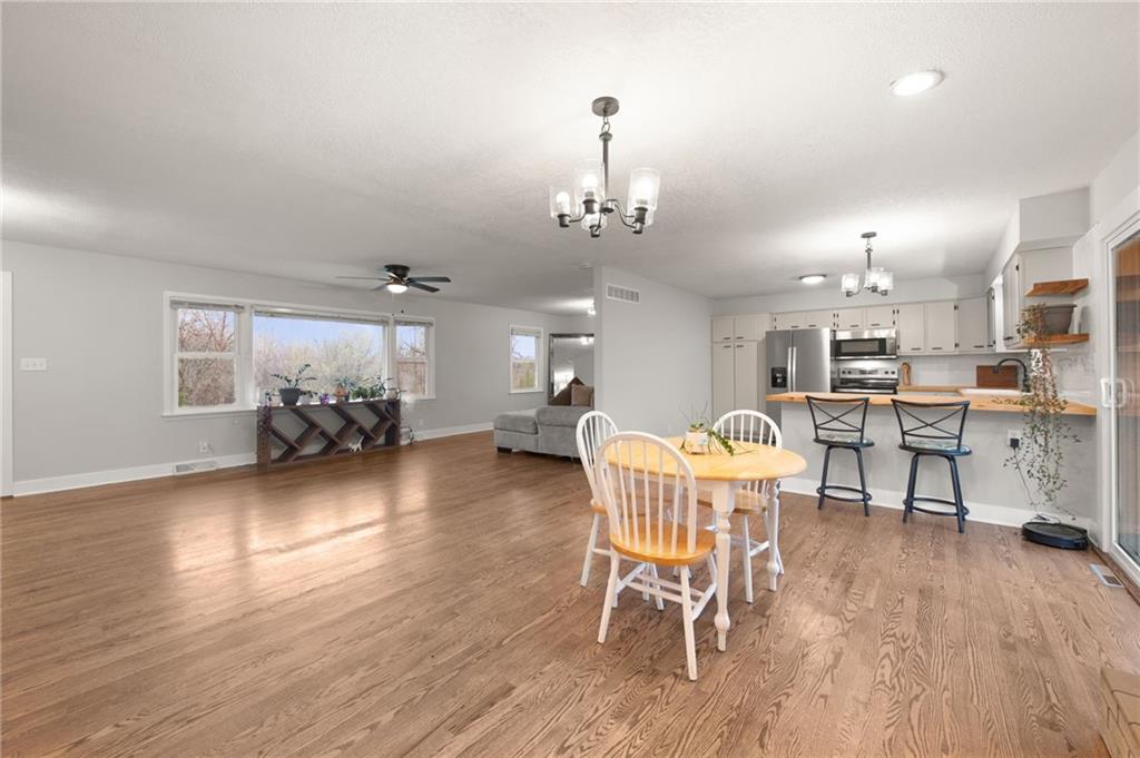 Thoughtfully updated and move-in ready, this raised ranch offers the space, layout, and modern touches today’s buyers are looking for. With updates throughout, the home blends a classic layout with fresh finishes, creating an easy, comfortable feel from the moment you walk in. The main level features three bedrooms, including a primary suite with a fully updated bathroom and walk-in tiled shower, along with an additional updated hall bath. The spacious family room flows into the dining area, anchored by a brick fireplace that adds warmth and character, all opening naturally to the kitchen. The kitchen has been refreshed with new countertops, updated finishes, and new appliances — making it both functional and inviting for everyday living and entertaining. Additional updates include flooring, doors, trim, fixtures, and bathrooms, giving the home a clean, cohesive look throughout. Along with all new siding. The lower level adds even more living space with a second fireplace, full bathroom, and a flexible area perfect for a second family room, office, or guest space. You’ll also find the laundry area and direct access to the attached two-car garage for added convenience. With multiple living spaces, solid updates, and a layout that just works, this home is ready for its next owner to move in and enjoy.