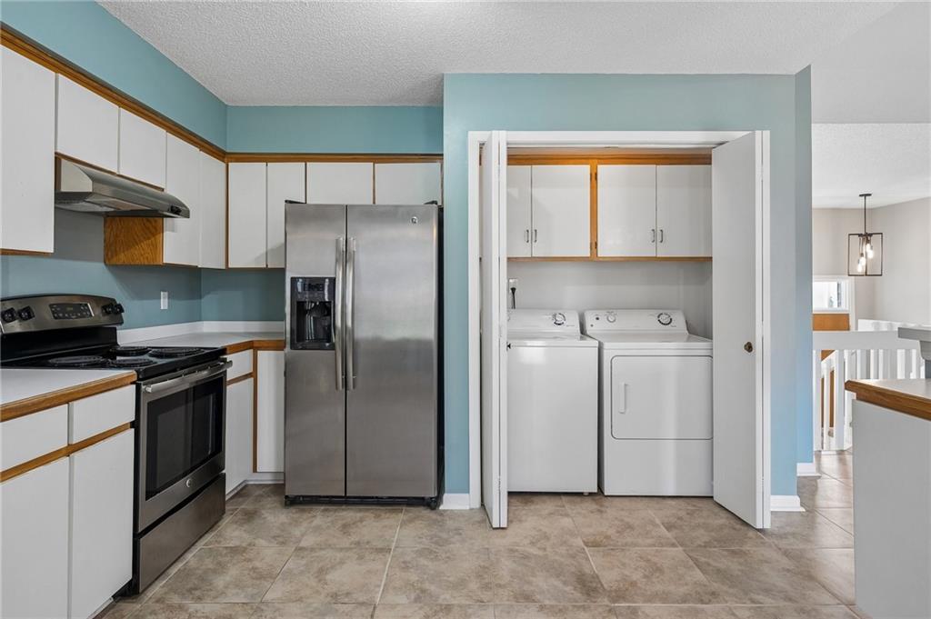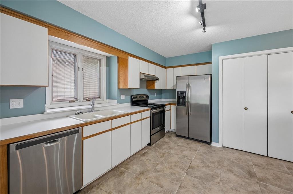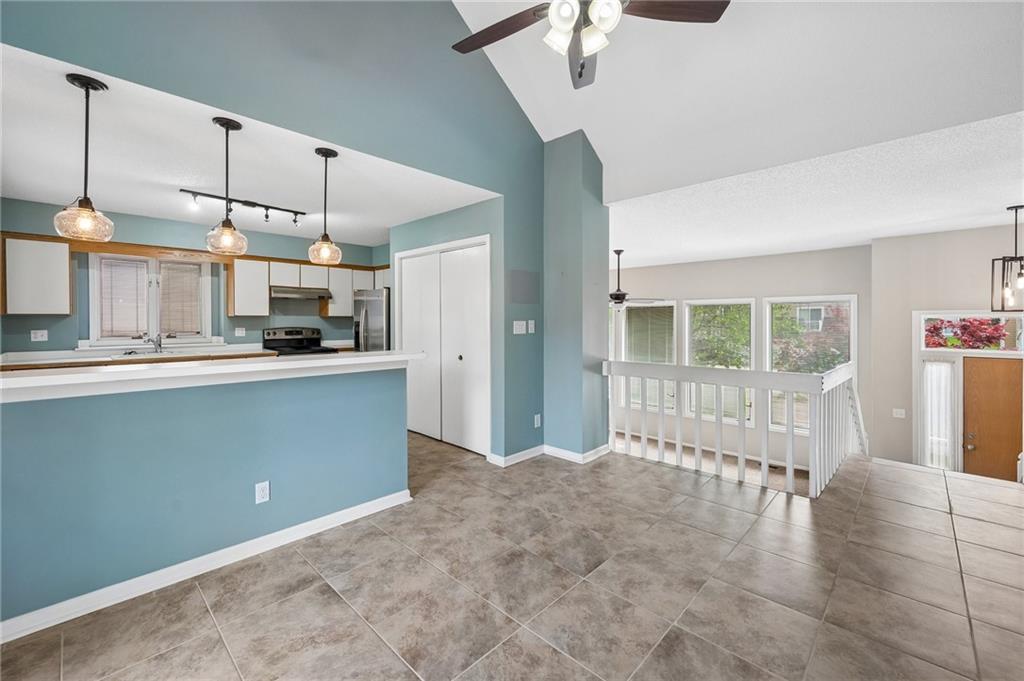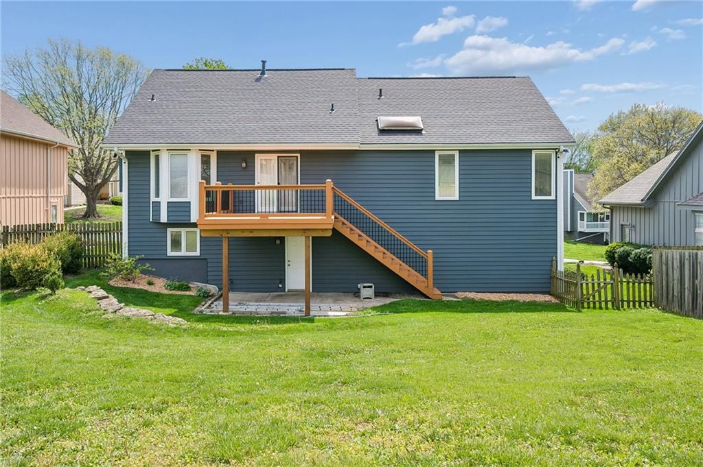 Well-maintained Front/Back Split in coveted Hunters Pointe and Blue Valley School District! Walk in through the Mid-Century modern solid wood front door to an open floor plan featuring large Living Room with 2-story vaulted ceiling, wall of windows, beautiful stone fireplace and built-in shelves on each side. Kitchen includes eat-in area, island, lots of cabinets and stainless appliances – Refrigerator stays with the home. Breakfast area leads to the deck overlooking the fenced backyard, which has areas ready for all your gardening needs. Master Suite has two closets, one being a nice walk-in closet, beautiful ceramic tile in the bathroom, separate shower and soaking tub, and double vanities. Two other bedrooms on the main level have nice sized closets and perfect for kids or a home office. Large Lower Level Family Room/Rec Room is great for movie nights, has a half bathroom, and walks out underneath the deck to a patio. There is also a large sub-basement for extra storage, or finish it to add additional square footage to the home. Oversized garage has plenty of room for vehicles, toys, tools and workbenches. The exterior of the home was wrapped with beautiful maintenance free CedarMAX Super Polymer Insulated Siding. Come see this one soon; it won’t last long!