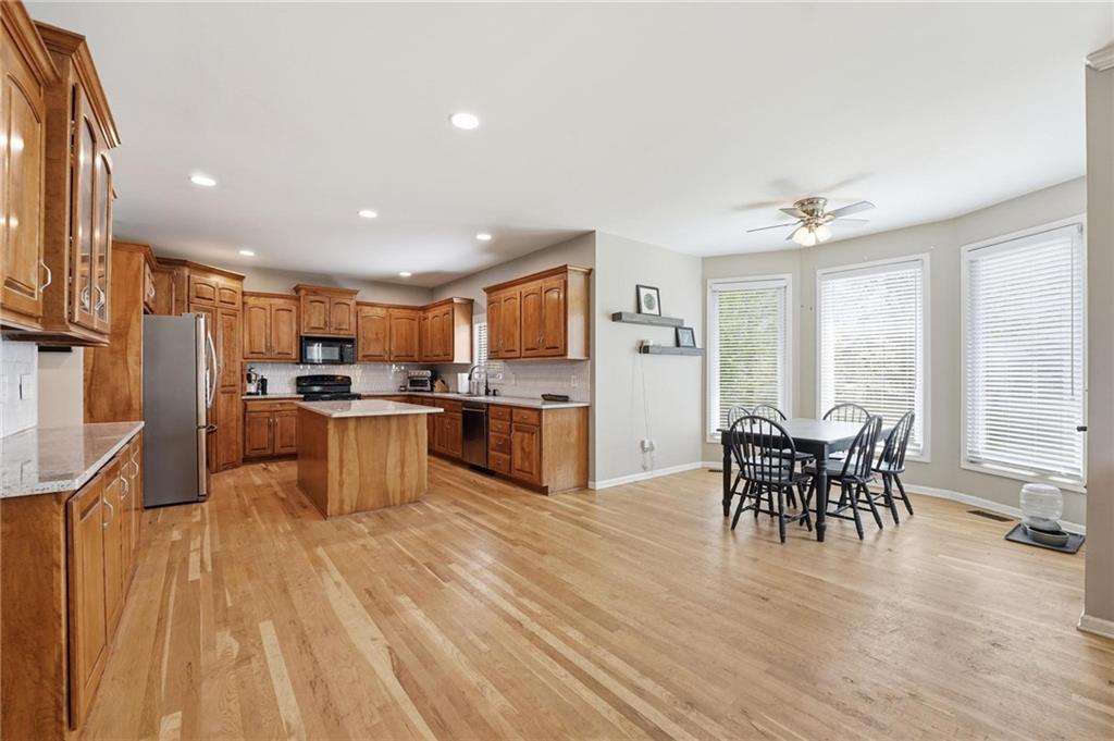 Welcome to this light-filled two-story home in highly sought-after Johnson County, ideally located in Olathe, Kansas! From the moment you enter the bright, open two-story foyer, you’ll appreciate the spacious and functional floor plan designed for modern living and entertaining. The main level features a formal dining room and an expansive great room that flows seamlessly into the kitchen, complete with granite countertops, a center island, walk-in pantry and stylish picket tile backsplash—perfect for hosting gatherings or everyday convenience. Upstairs, the oversized primary suite offers exceptional flexibility with room for large furniture or a private sitting area, along with a spa-inspired en-suite bath featuring a corner soaking tub, dual vanities, tiled shower, and generous layout. The daylight lower level provides additional living space ideal for movie nights, a game area, or a home office, plus a fifth non-conforming bedroom with closet and full bath—perfect for guests. Enjoy outdoor living in the level, fenced backyard. Conveniently located near top-rated Olathe schools, shopping, dining, and easy highway access, this Johnson County home combines comfort, space, and prime location—making it a must-see for buyers searching in the Olathe area.