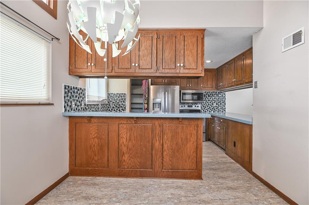 This 3-bedroom, 4-bathroom home in Raytown offers a unique blend of character, space, and functionality with a layout that stands out from the typical cookie-cutter design. From the moment you arrive, you’ll notice the inviting curb appeal, spacious driveway, and attached two-car garage. Inside, the home opens up to a bright and airy main living area featuring vaulted ceilings, warm wood accents, and a striking fireplace that anchors the space. Large windows and sliding glass doors bring in natural light and create an easy connection to the backyard, making the main level feel open and welcoming. The kitchen offers plenty of cabinet storage, generous counter space, and a functional layout that flows seamlessly into the dining area—ideal for everyday living or hosting guests. Just off the main living space, you’ll find well-sized bedrooms, including a primary suite setup, along with multiple bathrooms that provide flexibility and convenience for a variety of living situations. Downstairs, the home continues to deliver with additional living space perfect for a second family room, recreation area, or home office setup. With four bathrooms total, there’s no shortage of functionality throughout the home. Step outside to a fenced backyard with room to relax, entertain, or make your own outdoor vision come to life. If you’re looking for a home with solid bones, distinctive style, and room to personalize, this Raytown property is one worth seeing in person.