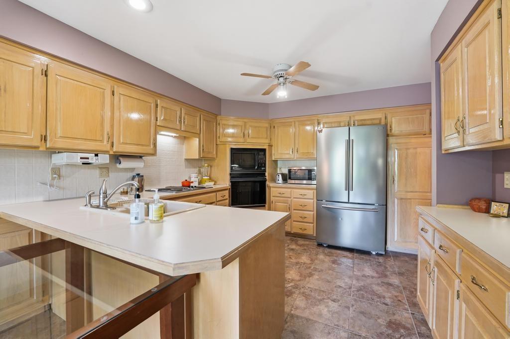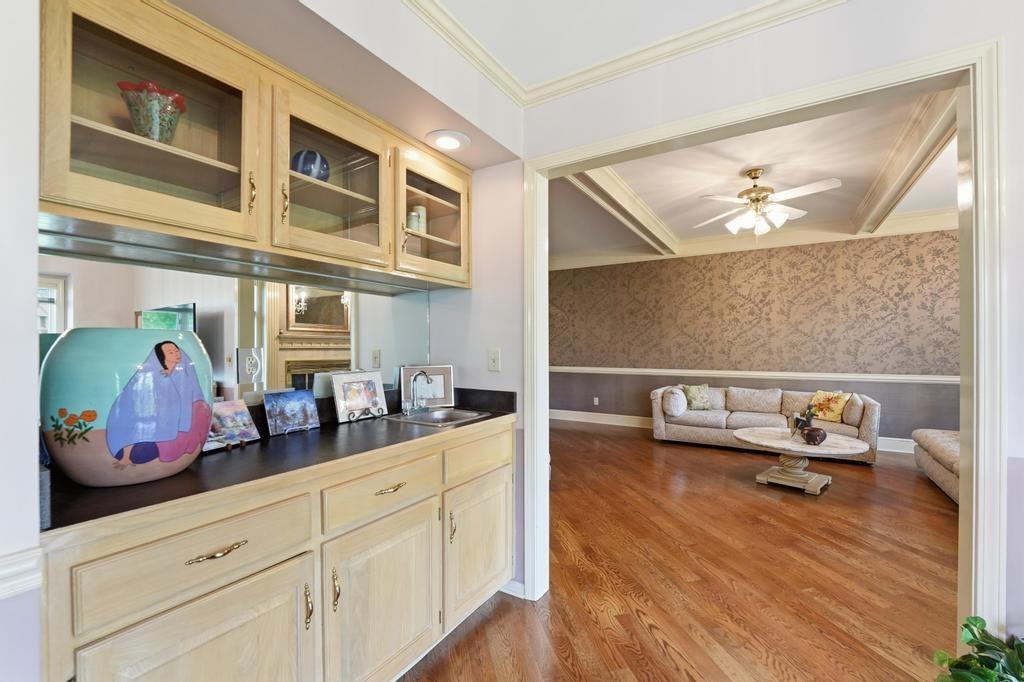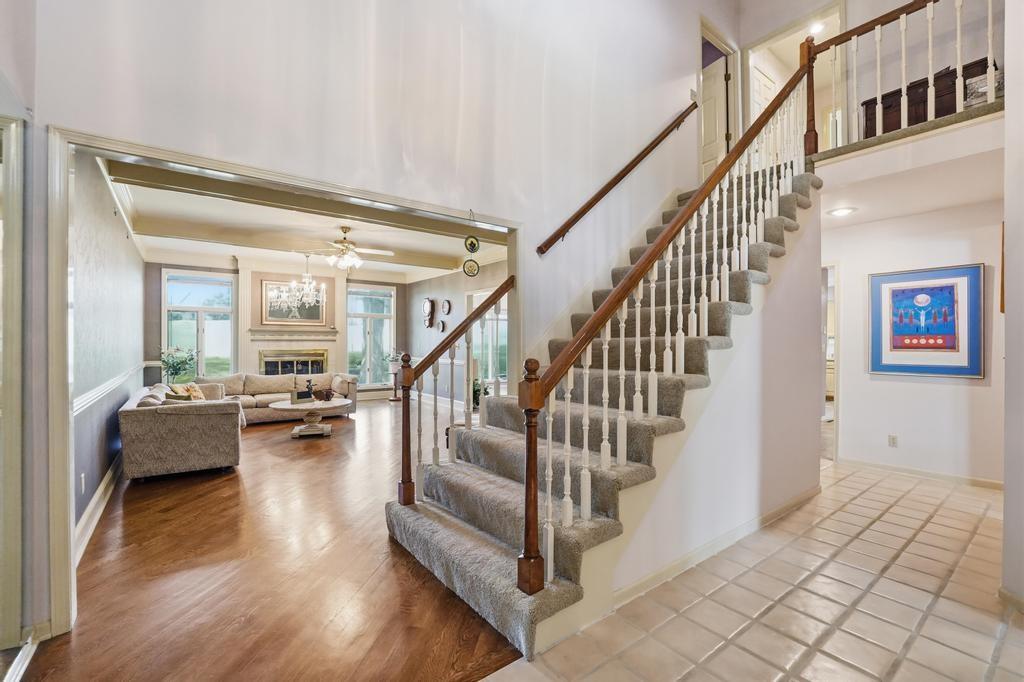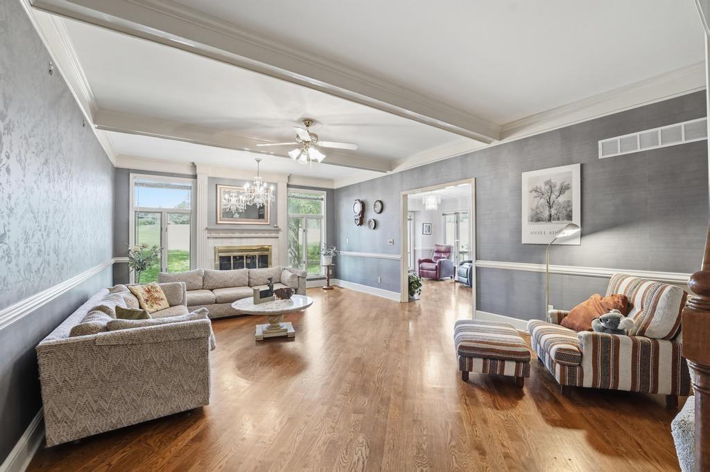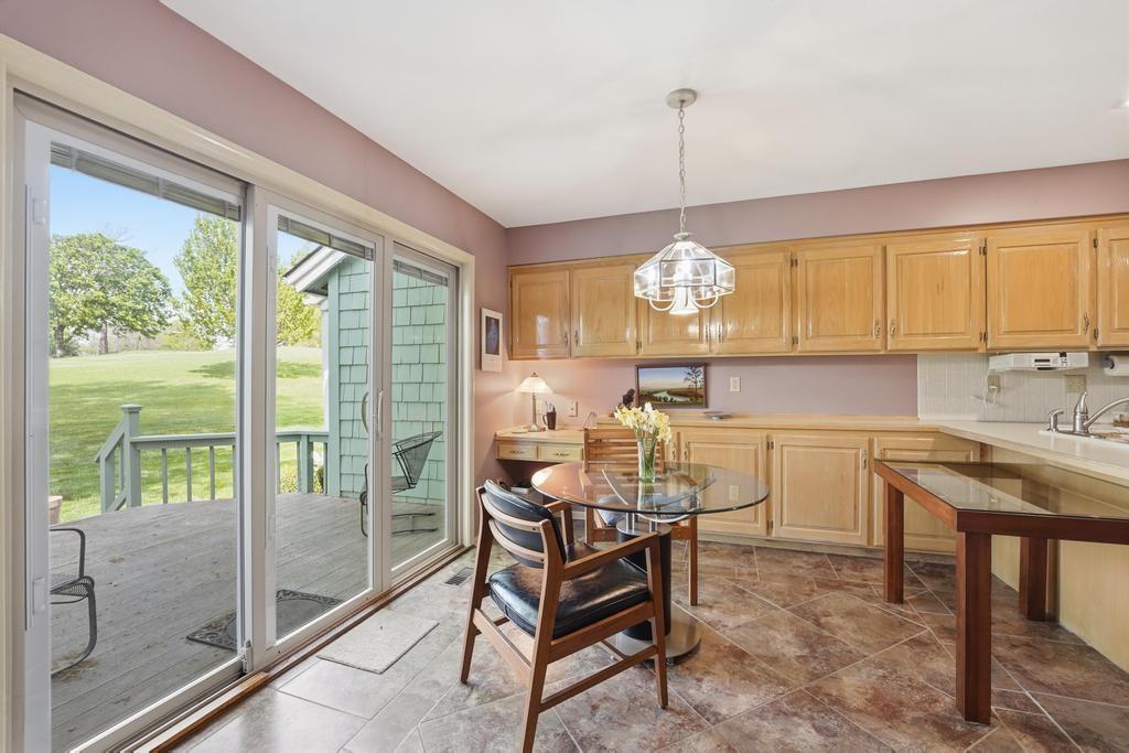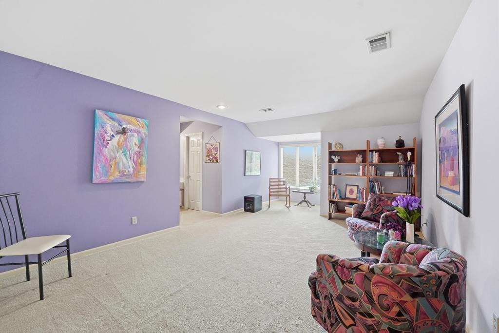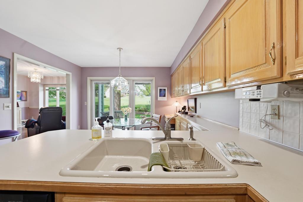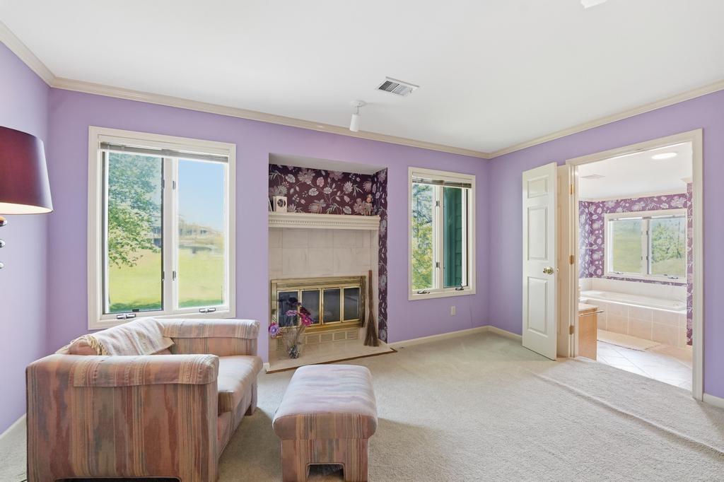 This Wellington Green townhome backs to green space/Blue Hills Country Club Golf Course. It is one of the larger homes in the subdivision and it feels so spacious! The main level has a gorgeous, bright, big living room with a fireplace, floor to ceiling windows, and hardwood floors. Next you walk into a sitting room/den with a wall full of windows and the same beautiful hardwood floors. The kitchen has plenty of cabinets and counter space and room for a small breakfast table overlooking the composite deck and golf course. A formal dining room, half bath, and laundry round out the main level. Upstairs you will find three SPACIOUS bedrooms. The primary bedroom has room for a sitting area, right in front of the fireplace. The ensuite bathroom has heated tile floors, a big whirlpool tub, double sinks, and a shower. The other two bedrooms share a jack and jill bathroom. The basement is finished into a large rec room with ceramic tile. There is also a full bathroom in the basement. All this home needs is your decorator's eye to make cosmetic updates! The home is being sold as-is. Inspections welcome. The fridge, washer, and dryer all stay.