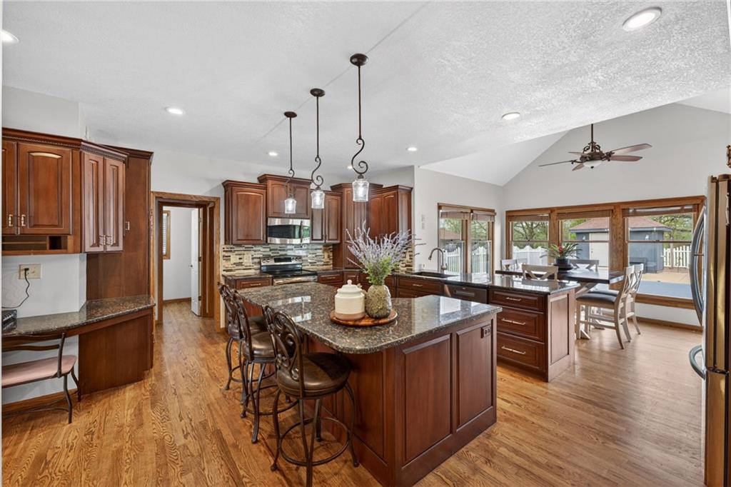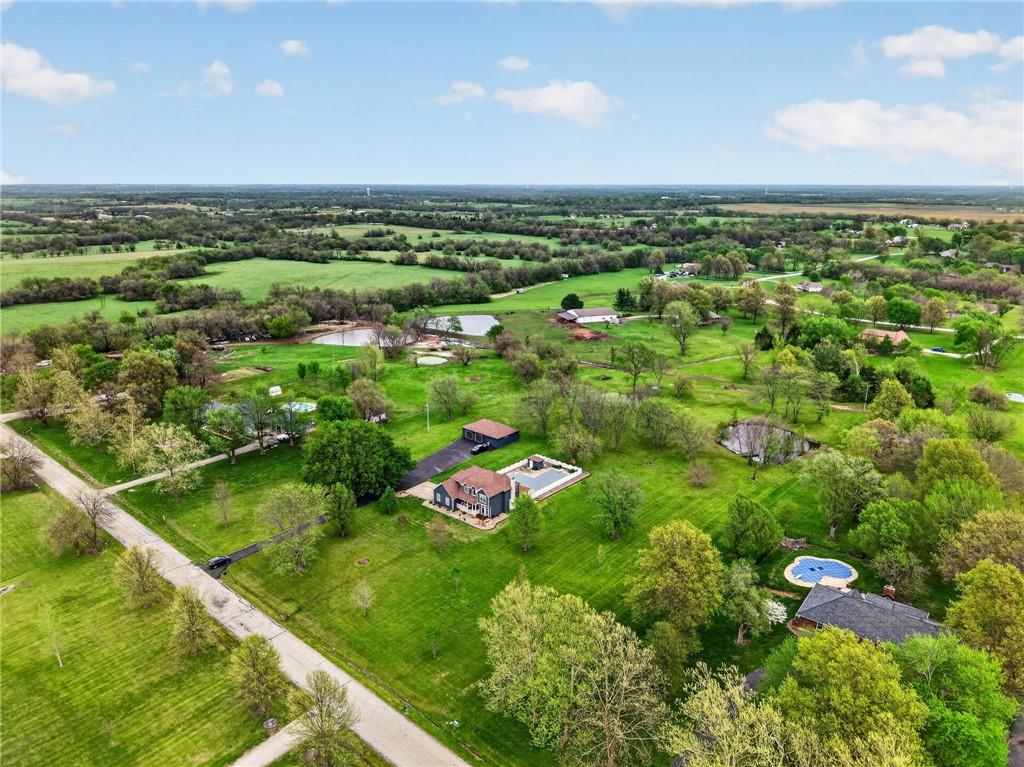 Welcome to your private slice of paradise—this stunning 5-acre property offers the perfect blend of comfort, functionality, and natural beauty. Surrounded by mature, picturesque trees, the setting provides both serenity and privacy, creating a peaceful retreat you’ll love coming home to. At the heart of the property sits a beautifully updated four-bedroom home, thoughtfully designed with both everyday living and entertaining in mind. Each spacious bedroom features its own attached bathroom and walk-in closet, offering comfort and convenience for family and guests alike. In addition, two versatile flex rooms provide endless possibilities—a secondary office, fitness space, hobby room, or even additional non-conforming bedrooms. Step outside and discover a true outdoor oasis. Enjoy warm days by the sparkling inground swimming pool or relax under the charming pergola on the inviting back patio—perfect for hosting gatherings or unwinding in the evenings. The scenic fishing pond, complete with its own dock, adds a tranquil touch. For those needing extra space, the large outbuilding is complete with a finished shop that includes an additional bathroom area. The shop is fully insulated, sheeted, has lots of storage, and a propane heater. This one-of-a-kind property combines modern updates, flexible living spaces, and exceptional outdoor amenities, set within a beautifully treed landscape, all within minutes of shopping, restaurants, and amenities.