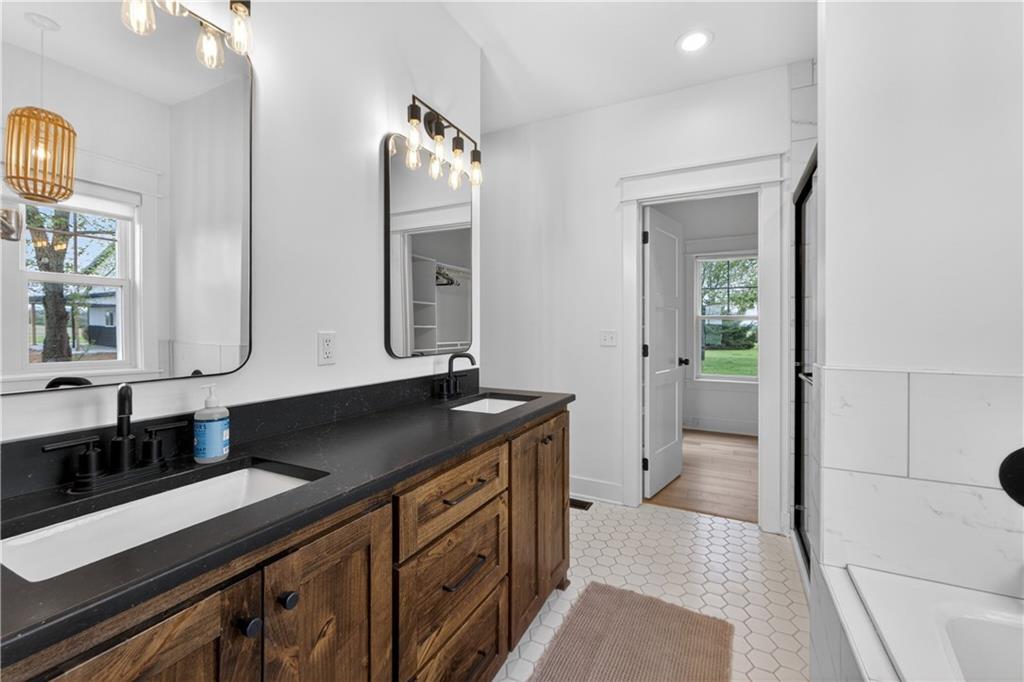 10 acres on blacktop — a rare blend of modern comfort and full-function hobby farm living. Built in 2020 as the sought-after builder’s personal residence, this open-concept home offers 6 bedrooms, 3.5 baths and 4,032 total sqft with thoughtful finishes throughout. Main living features include a dramatic two-story great room with abundant windows, wide-plank white oak engineered floors, a see-through fireplace between the dining room and living room, and a chef-ready kitchen flowing to living and entertaining spaces. The primary suite is conveniently located on the main level and opens to a large screened porch that, together with the dining room, leads out to an expansive concrete patio — ideal for indoor-outdoor living. Two oversized bedrooms upstairs include vanities/sinks plus a full upstairs bath; three additional bedrooms are located below grade. Practical comforts: main-level and basement laundry, an oversized two-car garage, and a large finished six-sided concrete storm shelter. Outdoor and outbuilding amenities are built for hobby farmers, equestrians, and weekend hosts. Approximately 2.5 acres are fenced and improved with a horse barn that has power and water. The back 5 acres serve as productive hay pasture. The 2,400 sqft barn/shop includes a 1,600 sqft insulated, heated & cooled shop space with two overhead doors and a full bath, plus an 800 sqft one-bedroom apartment with kitchen/living area, full bath, W/D hookups and a wraparound covered porch — perfect for rental income, guest quarters, or on-site help. Additional property highlights: chicken coop with power, water and indoor/outdoor access; raised-bed garden area with water run; a 33-ft above-ground pool with deck and awning for summer entertaining; and abundant acreage for riding, gardening, or expansion. Location is exceptional — just one mile from the new elementary school in the award-winning Basehor-Linwood School District.