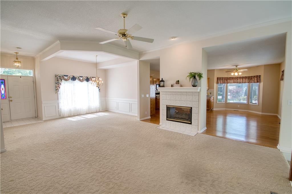 Beautiful 3-bedroom, 3.5-bath patio/villa home situated on a desirable corner lot in Leawood! This home offers an open floor plan with a main-level primary suite for convenient living, with a second bedroom on the main level. The primary suite features tile flooring in the bathroom and a relaxing soaking tub. The kitchen features hardwood floors, granite countertops, and a center island, opening seamlessly to the main living area, perfect for entertaining. A double-sided gas fireplace sits between the Hearth Room and Living Room. Step outside to a composite deck overlooking a lush yard. The finished walk-up basement includes an additional bedroom, bathroom, spacious family room, and ample storage. Two-car garage completes the home. Laundry is on the main level. This property offers incredible potential to make it your own in a highly sought-after location.
