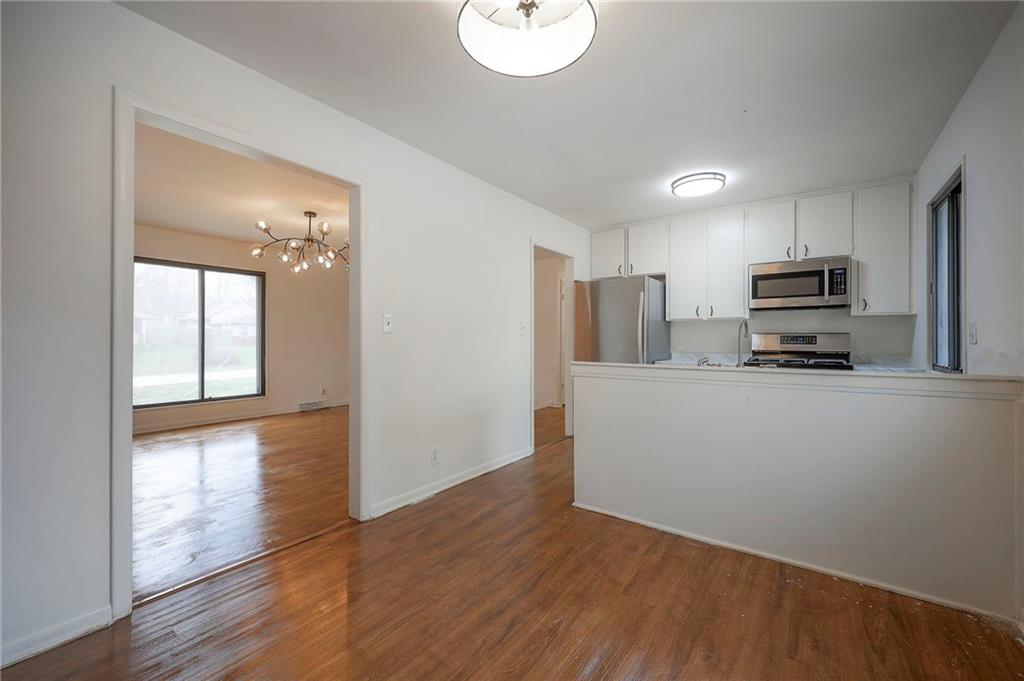 This well-maintained home is move-in ready and waiting for its next owners. Situated on a spacious half-acre lot in the heart of North Kansas City, the property offers 4 bedrooms, 2 bathrooms, and over 1,460 square feet of comfortable living space. Recent updates include fresh interior paint, new luxury vinyl flooring in the kitchen and basement, and modern lighting fixtures throughout. The main level features beautiful hardwood floors, a bright and open living area, and an updated bathroom with a walk-in shower. The kitchen is equipped with stainless steel appliances and opens to a large deck—perfect for relaxing or entertaining while overlooking the peaceful backyard. The finished walkout basement provides additional living space. An oversized detached two-car garage with a dedicated workshop area offers ample space for storage and projects. With a great home, generous lot, and a highly desirable location, this property is a must-see.
