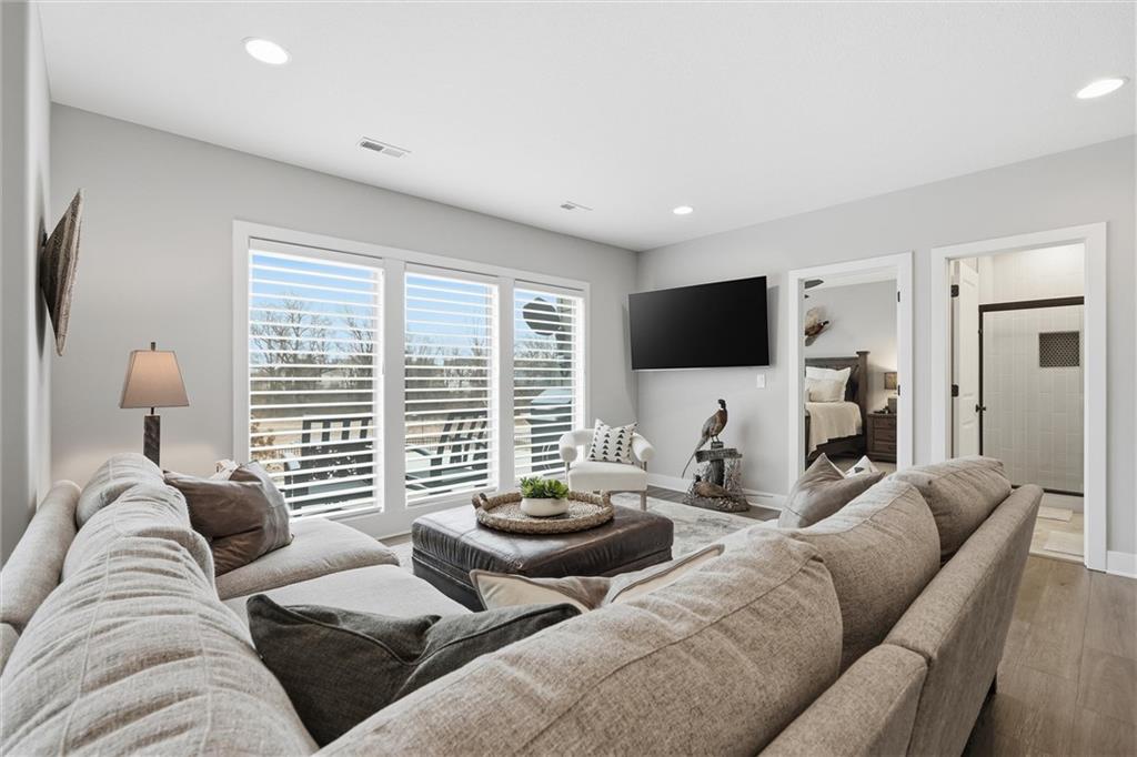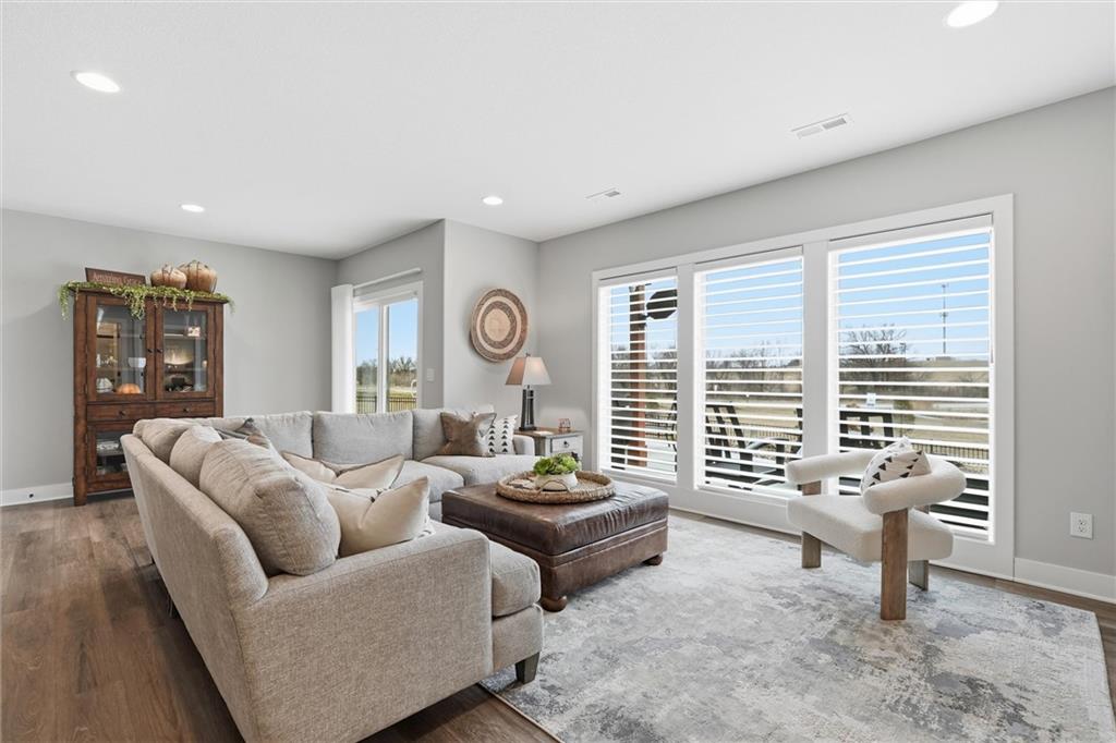 Tucked into desirable Phase 1 of Cadence Villas, this exceptional home offers a premium setting backing to green space with a nearby walking trail—providing privacy without sacrificing access to the outdoors. The walkout lower level extends seamlessly to a beautifully landscaped backyard featuring natural rock walls, mature trees, curated plantings, and designed pathways. Enjoy year-round outdoor living from the screened-in deck, extended patio, and fully fenced yard. Inside, the home is loaded with upgrades that enhance both style and function. The exterior features durable horizontal lap siding and a full-house Zip System for efficiency and weather protection. Interior highlights include upgraded lighting, board and batten accent walls, an oak picture shelf in the dining area, and a striking stone fireplace. The kitchen is equipped with high-end GE Café smart appliances, including a dual fuel range, convection microwave, dishwasher and French door refrigerator—ideal for entertaining. Additional features include 42” soft-close cabinetry, a Silgranite sink, matte black fixtures, and a built-in buffet with tile to the ceiling. Comfort continues with an ADT security system, premium window treatments, upgraded ceiling fans, and enhanced low-voltage wiring. Storage is maximized with custom closets, a Gladiator garage system, basement shelving, and a lit workbench. The garage also includes a 50-amp RV plug. Additional upgrades include hardwood flooring on the main level, LVP in the basement, upgraded carpet, enhanced bath cabinetry, elongated toilets, and a termite protection system. A rare opportunity to own a beautifully upgraded home in one of Cadence Villas’ most desirable locations. HOA dues are $650/year plus $200/month.