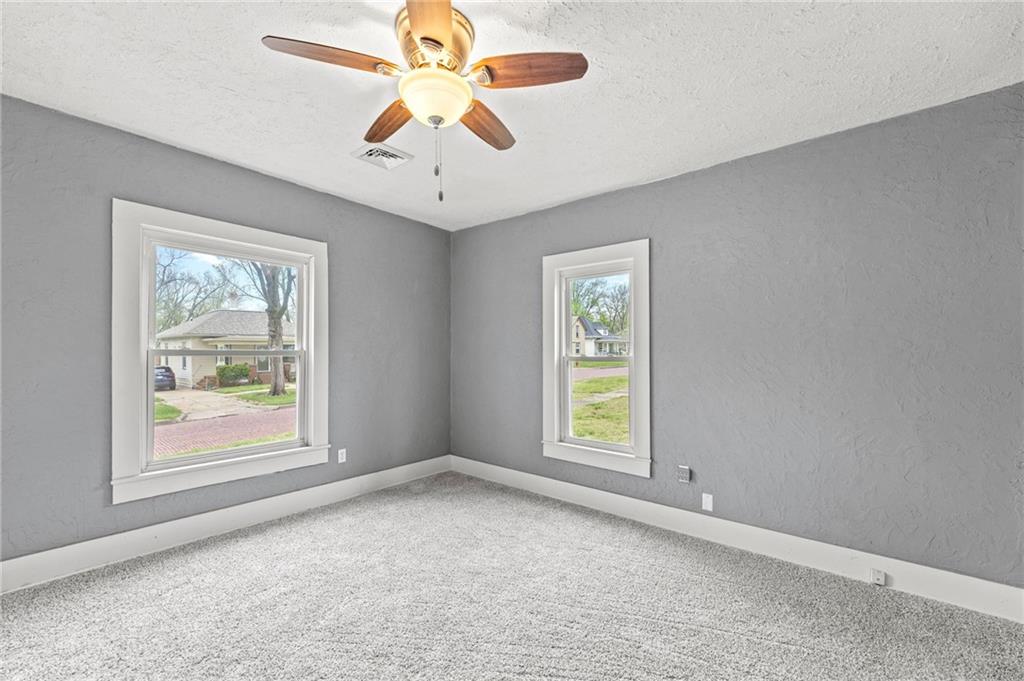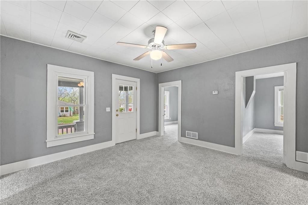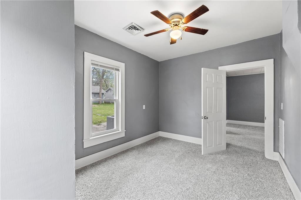 Here is a home with lots of charm! A 3 bedroom, 1 bath home that has been remodeled and brought back to life. New roof and gutters, newer tilt-in windows for easy cleaning, new paint inside and out, ceiling fans, and carpeting! The bathroom features new LVP flooring, new shower, toilet and remodeled. The kitchen has new LVP as well as new stainless steel appliances, double sink, refrigerator, electric stove, microwave and new Corian countertops. This house is move in ready. Come take a look! Did I mention the detached garage? Fresh new landscaping out front!