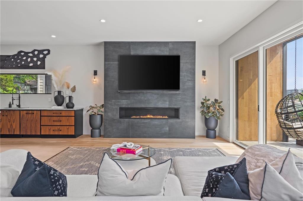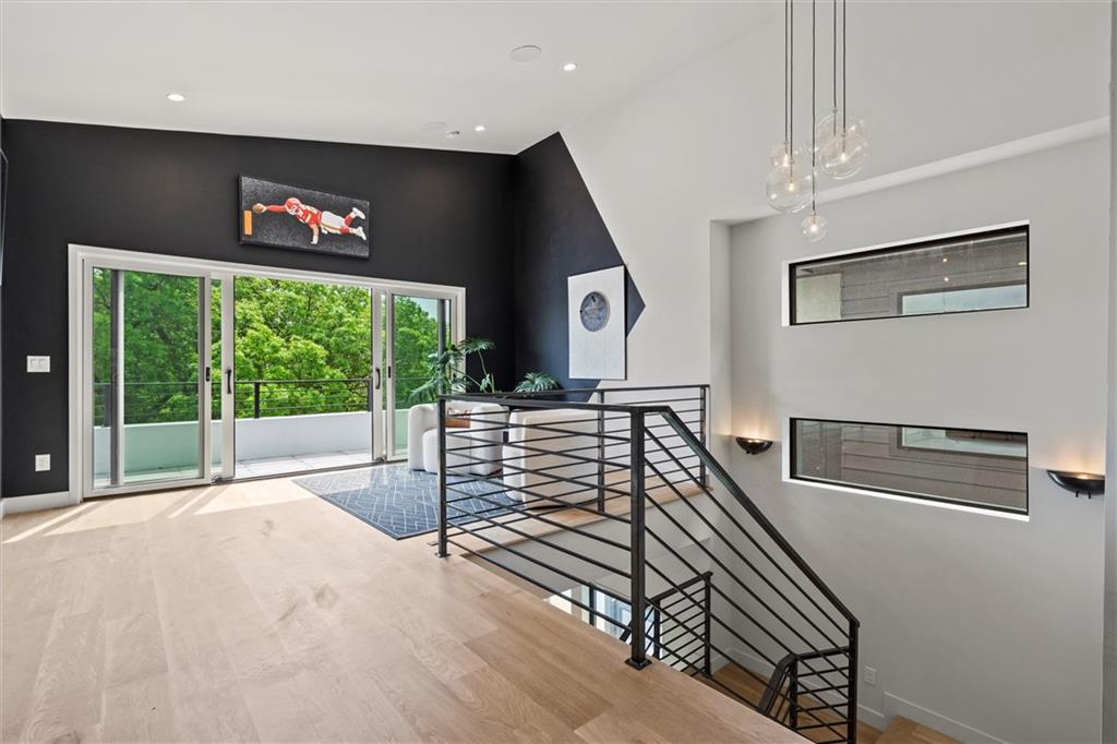 Discover this stunning custom-built home in the heart of Kansas City's sought-after West Plaza neighborhood. With an unbeatable location just minutes from Westport, The Country Club Plaza, and the Nelson Atkins Art Museum, this 2022 Artisan Home is an entertainer's dream. The exterior features gas lanterns, stucco, and a glass garage door with powder coated black metal framing, providing ample off-street parking with a three-car garage. Inside, you'll find 7-inch white oak hardwood floors, custom-fabricated steel railings, and Restoration Hardware light fixtures throughout. The second level includes a kitchen with inset walnut cabinets, hidden appliances, and stunning azul quartz countertops from Italy, leading into the main living area with an 80-inch gas fireplace and floor-to-ceiling charcoal concrete. The dining room features a 24-foot vaulted ceiling and large windows with electric blinds. The home offers multiple outdoor spaces, including concrete patios, a privacy-fenced backyard, and a 200-square-foot rooftop deck with views of the Country Club Plaza. With two primary suites, a potential fifth bedroom, and a top-floor movie theater with a soundproofed entertainment area, this home truly has it all. Freshly painted interior. Sellers are willing to include the home theatre equipment with an acceptable offer. Don't miss your chance to own this masterpiece in West Plaza.