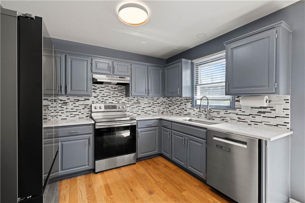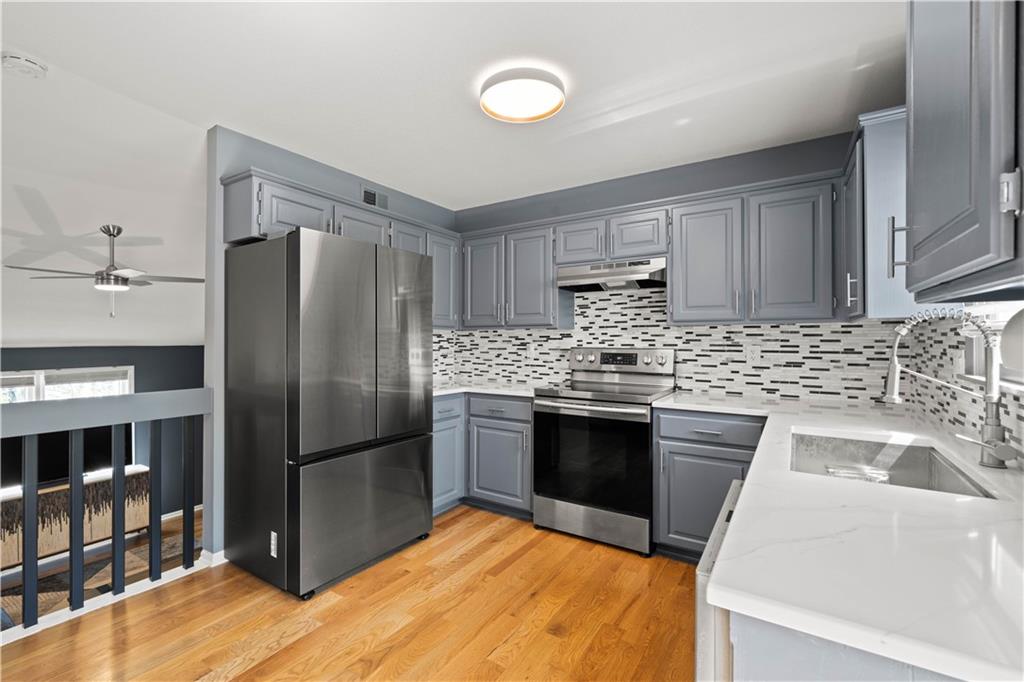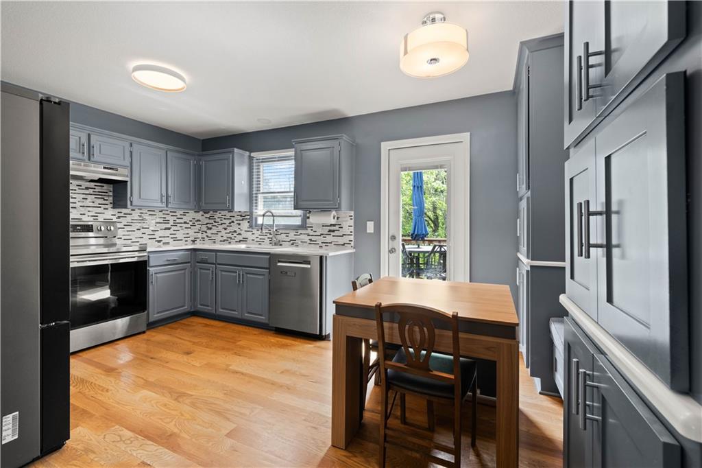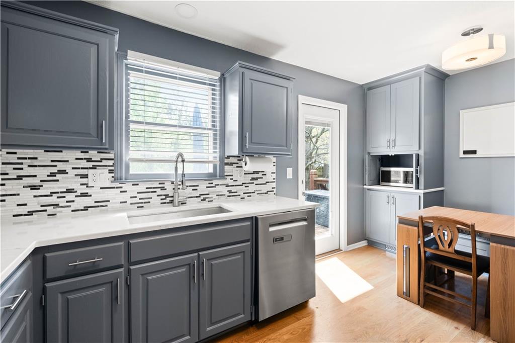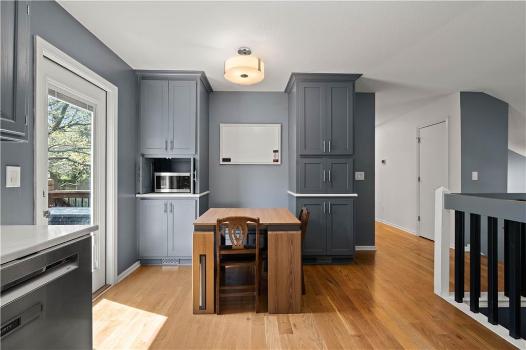 FULLY UPDATED. TRULY MOVE-IN READY. Designed for how you actually live, this 4-bedroom, 2.5-bath home offers a functional layout designed for modern living. The kitchen features updated quartz countertops, a new backsplash, and modern finishes. A custom built-in bench with added cabinetry creates a built-in dining space rarely found in this layout and flows seamlessly into warm living areas with hardwood floors and a cozy fireplace. Updated bathrooms, including a standout primary suite with a custom walk-in rainfall shower, create a clean, elevated feel throughout. The layout includes multiple living areas, with a finished lower level that serves as the fourth bedroom and also works well as a media room or home office. The layout works easily for both everyday living and hosting. Enjoy a fenced backyard with mature trees for a private, quiet outdoor setting, all tucked into a no-outlet neighborhood with no HOA and convenient access to parks, shopping, restaurants, and highways. Major updates include A/C (2023) and water heater (2024). Move in and enjoy from day one