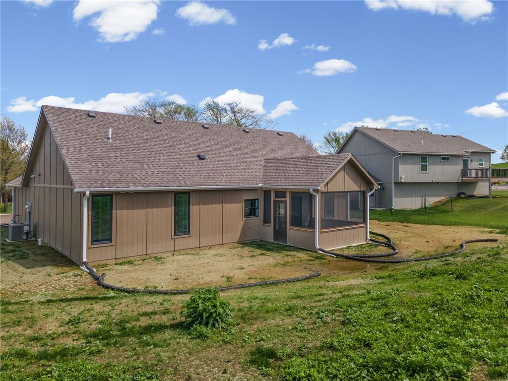 NEW BUILD, Single-level living at its finest. This 3-bed, 2-bathroom home is perfectly situated near the Plattsburg Country Club golf course and surrounded by new homes in a highly desirable area of Plattsburg. This convenient layout has ZERO steps, 36" wide doors, a spacious garage, and a screened-in back patio waiting for its new owners! The thoughtful layout offers an open living space concept with the living room, kitchen, and dining area flowing seamlessly together. On one end, you have 2 bedrooms with a full bathroom between them acting as the main bathroom for your guests and on the other end, you have the primary suite. The spacious primary suite offers a walk-in closet, a spacious on-suite with all of the fixtures that make it feel just right. The oversized windows in the bedrooms are an amazing feature, allowing the perfect amount of natural light into the home. Did I mention NO STEPS? This feature makes the transition from the garage space into the mudroom, straight to the pantry, a breeze! Enjoy the nice, well-graded corner lot, with enough space for your pets to roam yet not too much yard to be a burden on you to maintain. Modern home, modern fixtures, single level living, close to the golf course.