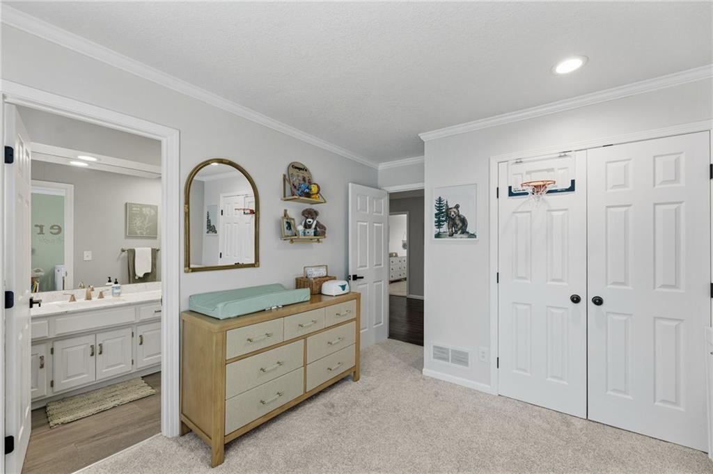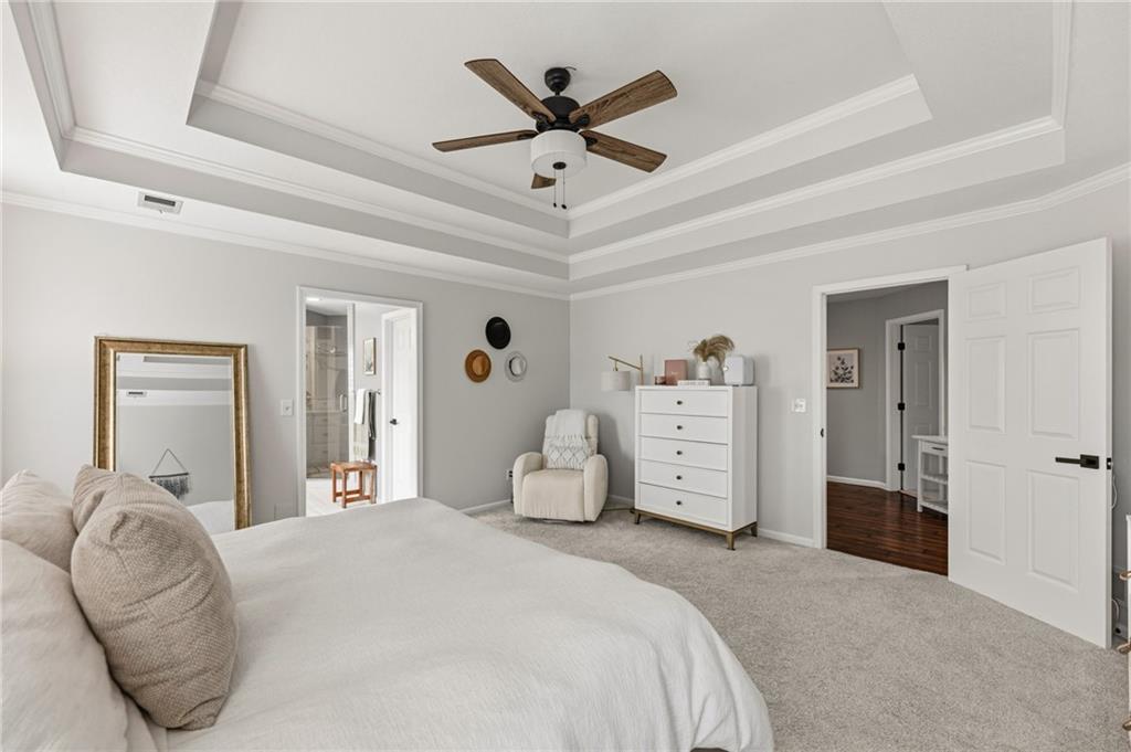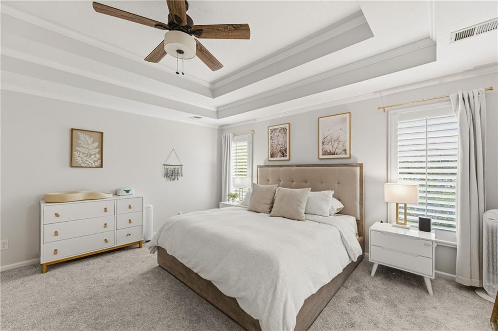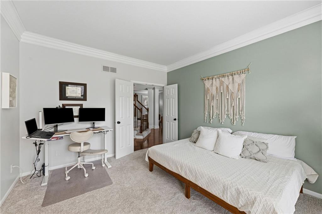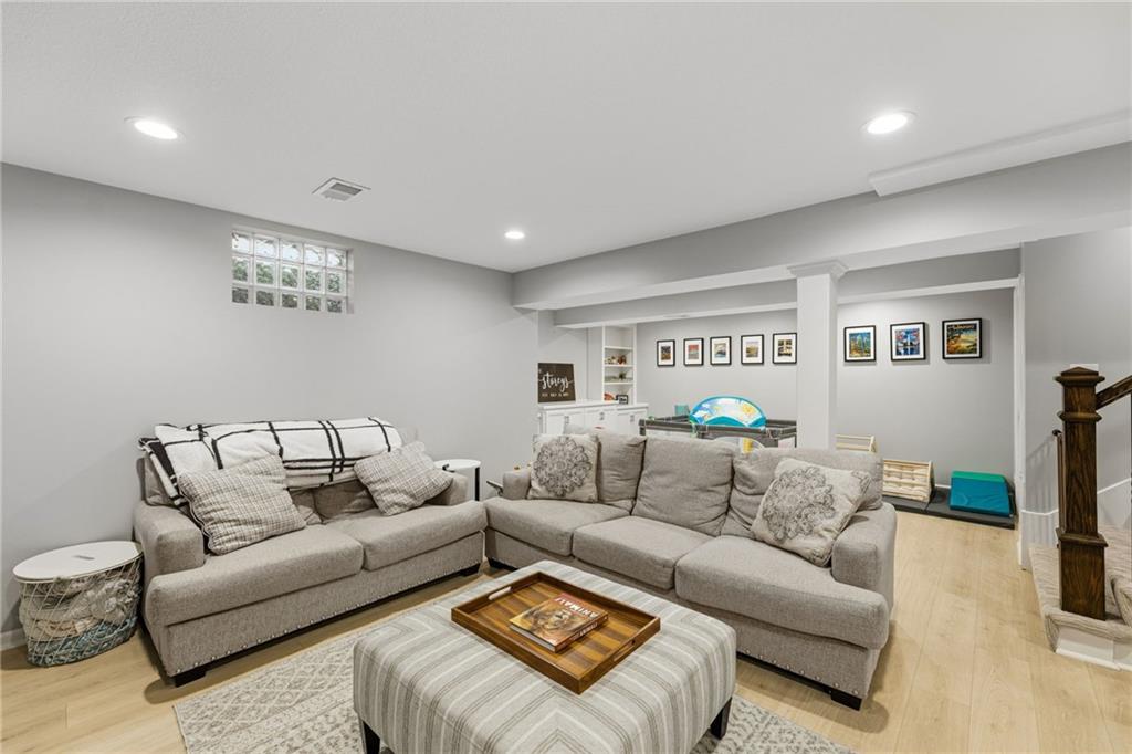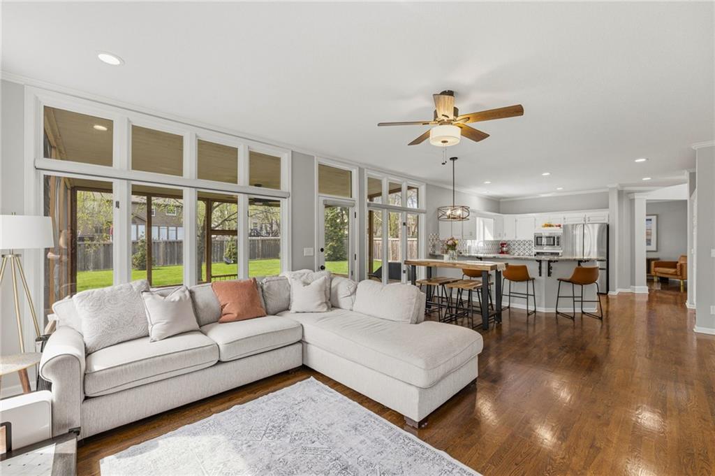 SELLERS HAVE ACCEPTED AN OFFER AND ARE WAITING FOR FINAL SIGNATURES FROM RELO CO. TO CHANGE THE STATUS. This home offers an impressive blend of luxury, functionality, and an unbeatable location. Step inside to a spacious, light-filled interior featuring designer finishes and quality craftsmanship throughout. Hardwood floors anchor the main level, where a thoughtfully designed layout offers multiple living and dining spaces—perfect for both everyday living and effortless entertaining. Enjoy a large, inviting family room ideal for gathering, along with additional living areas that provide flexibility for relaxing, working, or hosting guests. The home also features multiple dining spaces, including a formal dining room for special occasions and more casual areas for everyday meals. Soaring vaulted ceilings and generously sized rooms create a bright, airy atmosphere showcasing the home beautifully. Freshly painted inside and out, the property also boasts numerous upgrades throughout. The stunning gourmet kitchen is a true centerpiece, complete with stainless steel appliances, quartz countertops, and abundant white cabinetry. A well-appointed main-level bedroom provides added flexibility, ideal for guests, multigenerational living, or a private office retreat. Additional highlights include a composite roof replaced less than two years ago, and a lower-level recreation room featuring new LVT flooring, a cozy fireplace and wet bar—ideal for relaxing or hosting guests. A non-conforming sixth bonus room and a convenient half bath complete the lower level. For those who enjoy the outdoors, the newly screened porch offers the perfect retreat. Unwind with a good book while taking in peaceful sunset views over the private fenced backyard. Located in a highly sought-after neighborhood, this home is just minutes from Town Center, offering a variety of dining and shopping options, as well as nearby parks with scenic walking and biking trails.