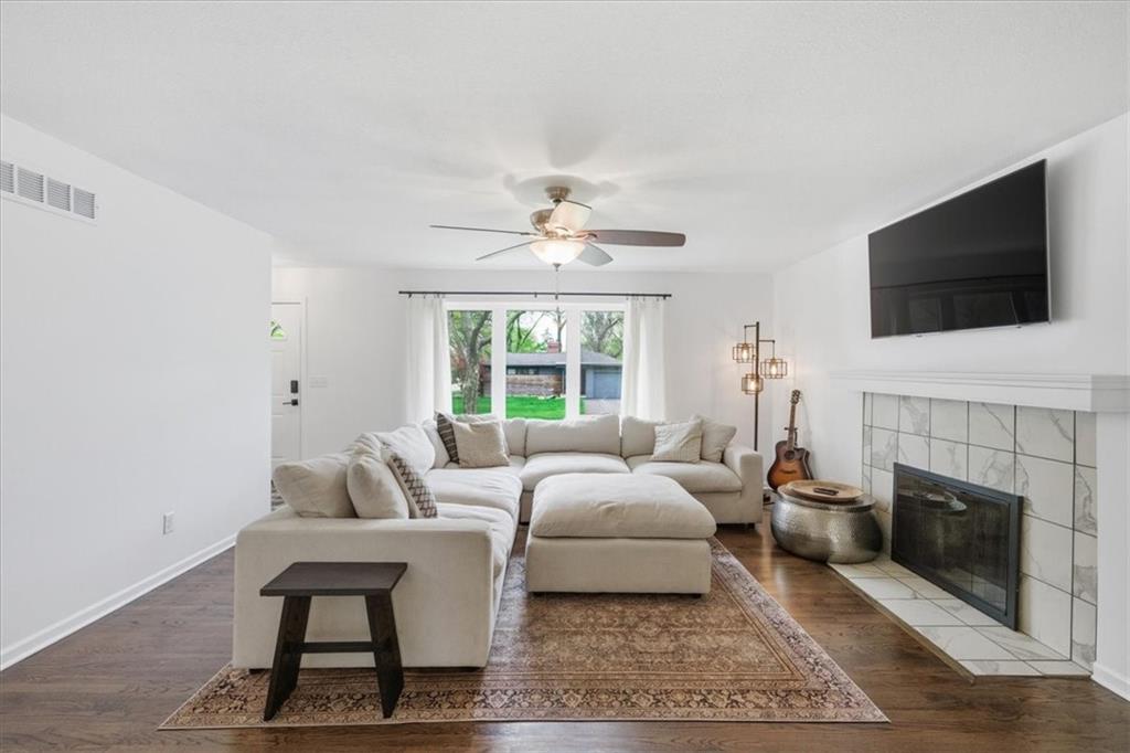 Beautifully updated, spacious and pristine ranch on a large, corner lot in SMSD and the heart of Prairie Village just a mile from the Shops! The open floor plan features clean, white walls and gleaming hardwood floors, creating the perfect canvas to make this already stunning space your own. The spacious living area is illuminated by a big, bright picture window and a cozy fireplace to set the perfect mood no matter the time of year. The elegant, understated dining area is the ideal setting for enjoying an intimate meal or entertaining guests, and while you eat you can enjoy views of the sunroom and fenced backyard and patio, or enjoy your meal al fresco when the weather is too good to resist. The beautifully appointed kitchen features fresh white cabinets, gorgeous granite countertops, subway tile backsplash, and a conveniently placed breakfast or home office nook, laundry closet and half bath. On the other side of this true one-level living home you will find a private primary suite, two nicely sized bedrooms and a second full bath. The full, concrete basement is perfect for storage, future finished space, or enjoying a round of pickleball! You can’t beat this aesthetic, this location, or this school district, so don’t wait to make this one yours!