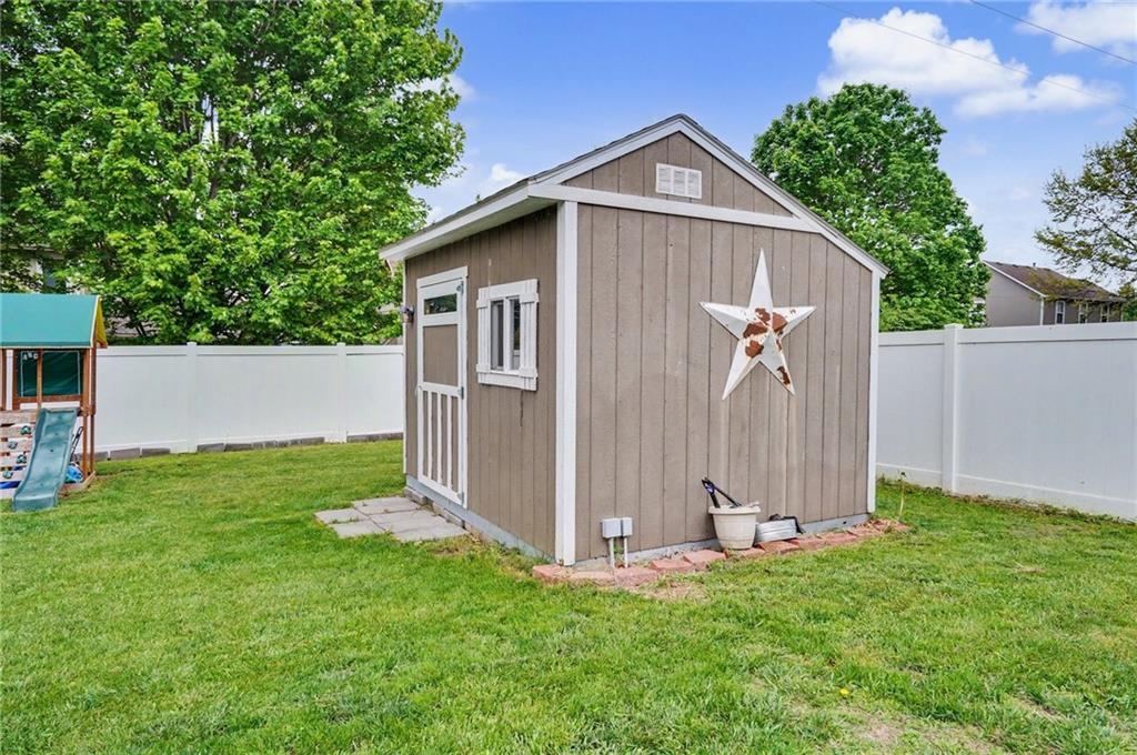 Beautifully updated 5-bedroom, 3-bath home tucked into a quiet neighborhood with sidewalks and recently improved roads. From the moment you walk in, you’ll notice the tall ceilings and natural light pouring into the main living space, creating an open, airy feel that instantly feels like home. Step out back to a fully fenced yard with a low-maintenance vinyl fence and spacious deck—perfect for relaxing evenings or hosting with ease. With three bedrooms upstairs and two additional bedrooms in the fully finished basement, there’s room to spread out. The basement also features a second living area, full bathroom, and generous storage, offering flexibility for a variety of needs. The large outbuilding is a true bonus—fully equipped with electricity, heating, and cooling—ready for a workshop, hobby space, or whatever fits your lifestyle. Thoughtful updates throughout include fresh interior paint, updated light fixtures, Cat5 wiring for connectivity, a water softener and reverse osmosis system, plus a new sump pump and hot water heater in 2024. A spacious two-car garage adds everyday convenience. Move-in ready, well-maintained, and packed with functional upgrades—this one checks all the boxes! Book your showing today!