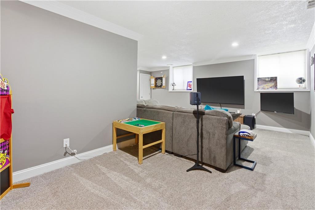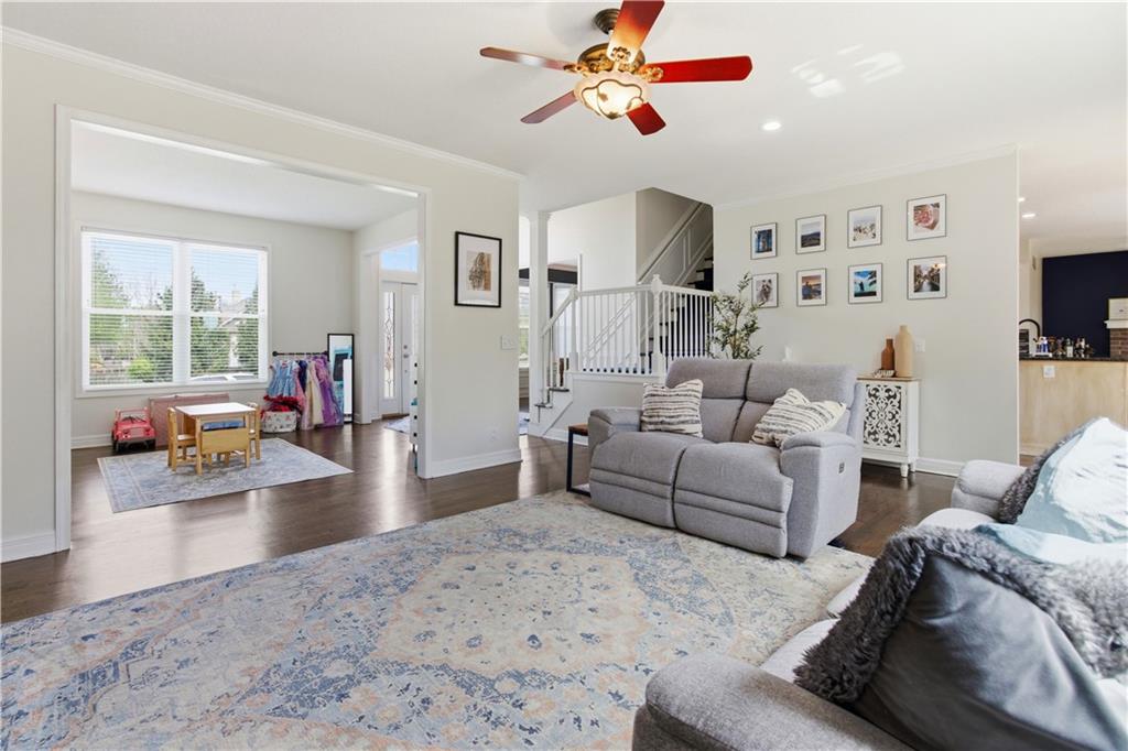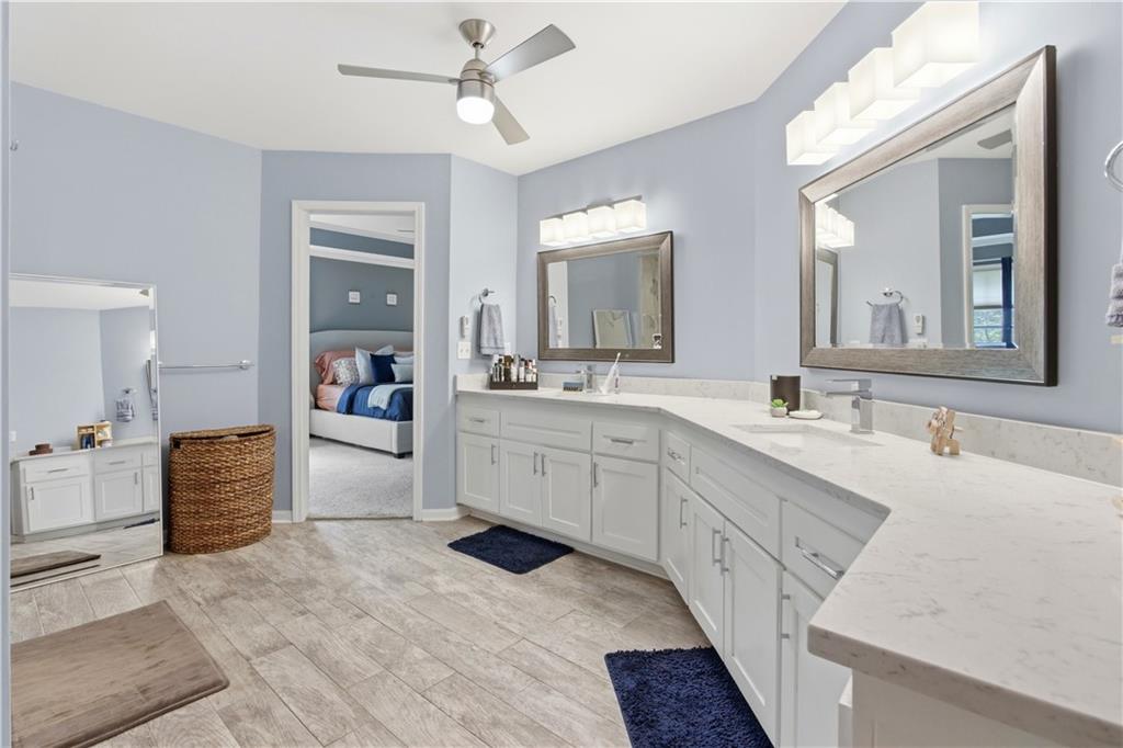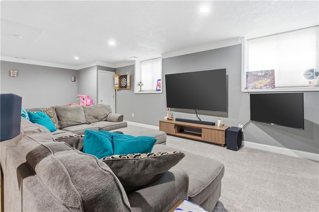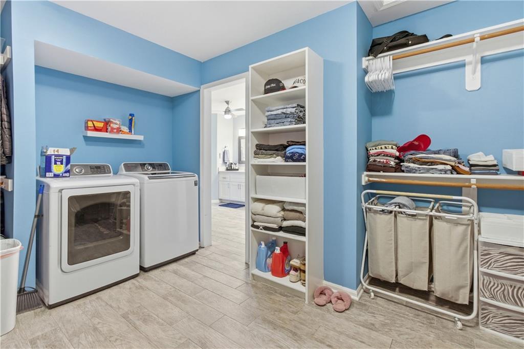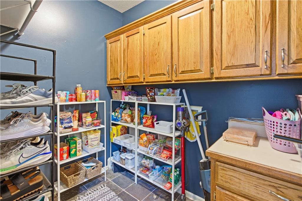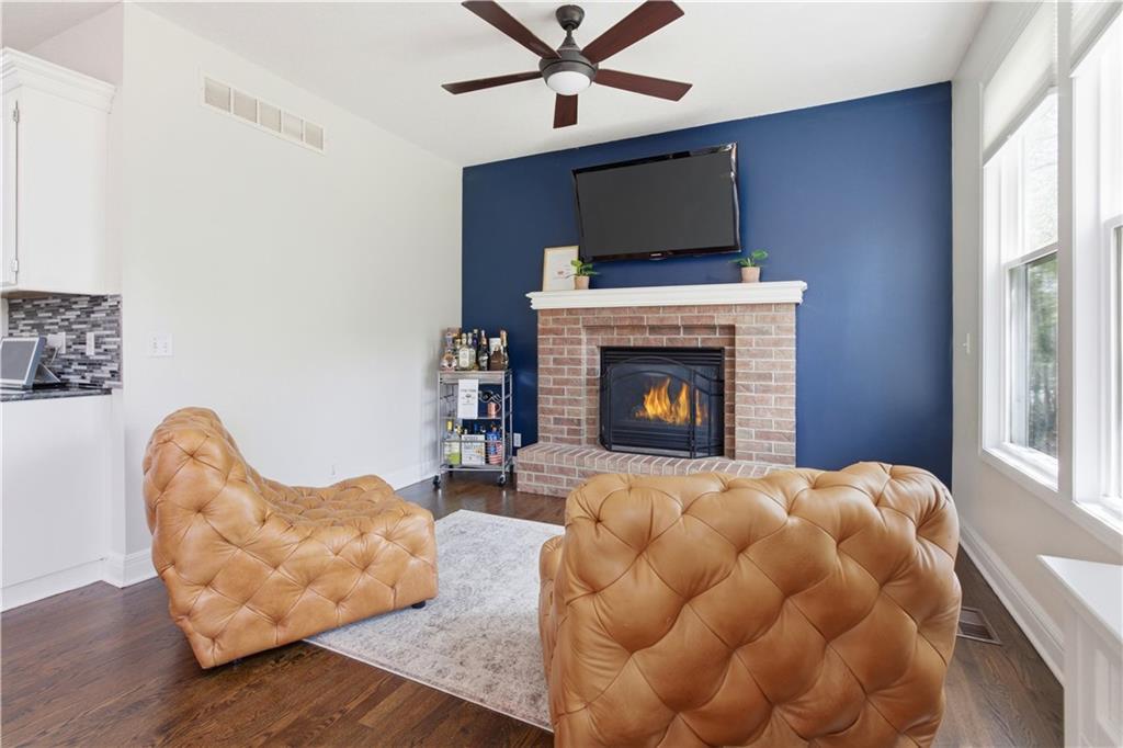 Move-in ready beauty! Spacious two-story home on a large cul-de-sac lot. Newer windows on main and basement levels. Grand main entrance opens to dining room and bonus sitting room. Bright, large windows throughout. Cozy living room with fireplace. Main floor boasts a HUGE kitchen with abundant counter and cabinet space, updated appliances, eat-at island, and breakfast nook overlooking backyard. Bonus hearth area perfect for entertaining or relaxing. No popcorn ceilings! Walk-in pantry with original laundry hookups plus second laundry hookup in primary bedroom closet for convenience. Half bath on main level. Upstairs features hardwood floors in most bedrooms, cozy carpet in primary, and each bedroom has its own attached bath—Jack and Jill for smaller rooms, private bath for guest room. Massive primary suite with office space, en-suite with oversized shower, ample counters, and walk-in closet. Finished basement with game/family room, full bath, and bonus workout/play space. Storage room doubles as golf practice area. Huge deck with built-in fire pit and direct gas hookup. Located in Blue Valley schools and very close to Black Bob Park, groceries, shops, dining and more!