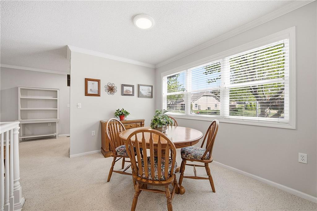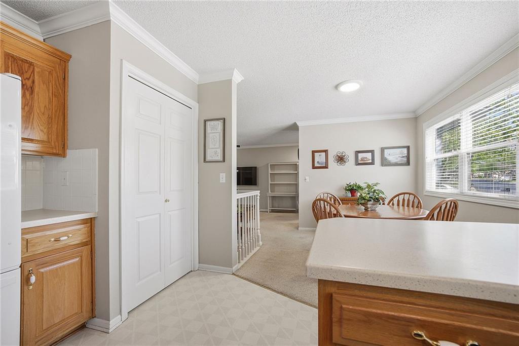 Welcome home to this beautifully maintained 2-bedroom, 2-bath ranch townhome in the highly sought-after Sterling Estates, a charming 50+ maintenance-provided community in Olathe. Opportunities in this tucked-away neighborhood are rare, and this one is truly special! Step inside to a light-filled open floor plan featuring a bright kitchen with a breakfast bar, and seamless flow into the dining and living spaces—perfect for easy everyday living and entertaining. The spacious primary suite offers double closets and a private en-suite bath, while the secondary bedroom is conveniently located near a full guest bath. Enjoy peaceful mornings or relaxing evenings on the private covered deck overlooking beautiful trees and greenspace, offering both privacy and serene wooded views. The finished basement provides incredible extra living space, with two large rooms, abundant closet storage, built-in bookshelves, and a half bath—ideal for a family room, office, hobby space, or guest area. This friendly, vibrant community offers true low-maintenance living with the HOA covering exterior maintenance, roof, siding, lawn care, and snow removal. Residents also enjoy wonderful neighborhood events including monthly luncheons, social gatherings, and annual picnics. Conveniently located close to shopping, dining, and highway access, this hidden gem offers easy living in Johnson County at an affordable price. Homes in Sterling Estates rarely come available—don’t miss your chance!