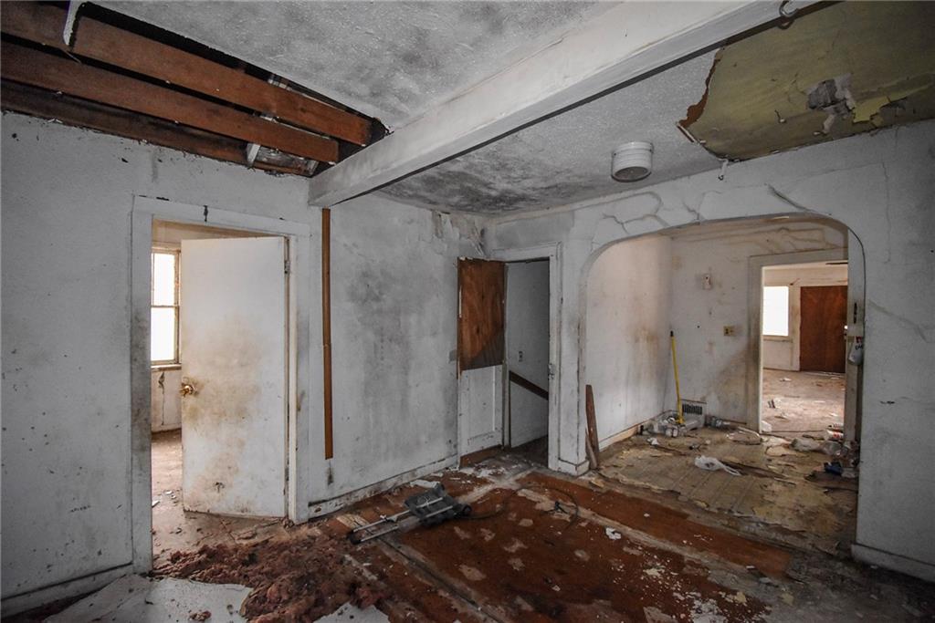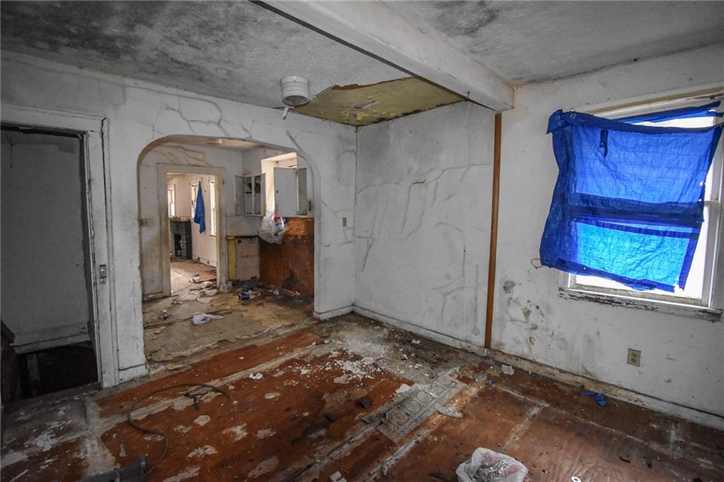 Bring your contractors to this spacious ranch in South Kansas City. Walk up the front steps onto the patio and enter into the large living room with a brick fireplace. To the right you'll find two bedrooms and the full bathroom as well as a linen closet. Further into the home is a kitchen with adjacent dining area. The third bedroom is to the right of the dining area in the back of the home. There is a small porch in the back of the home that is currently inaccessible. The large unfinished basement has lots of potential.