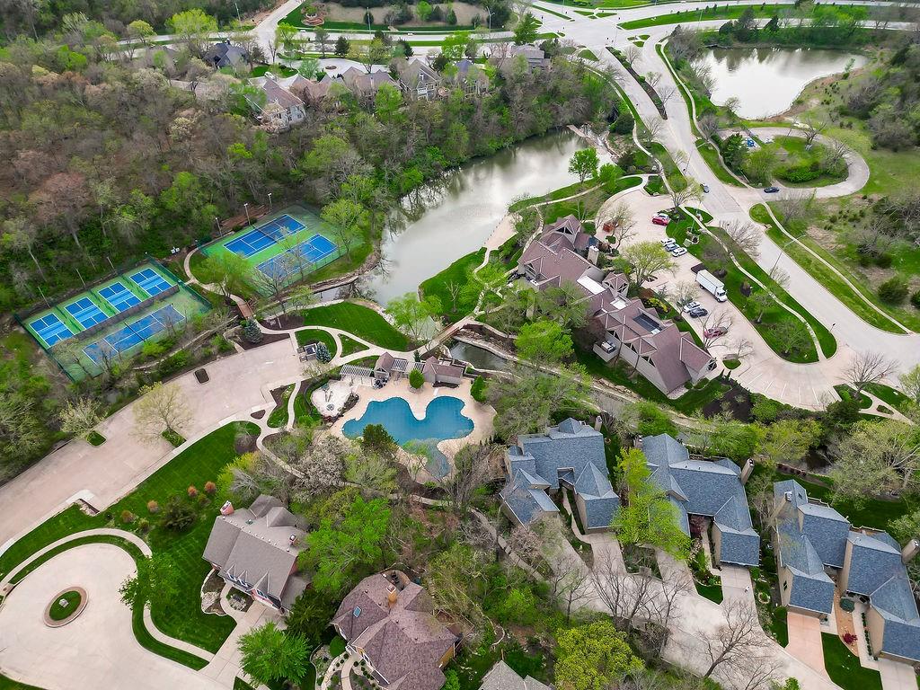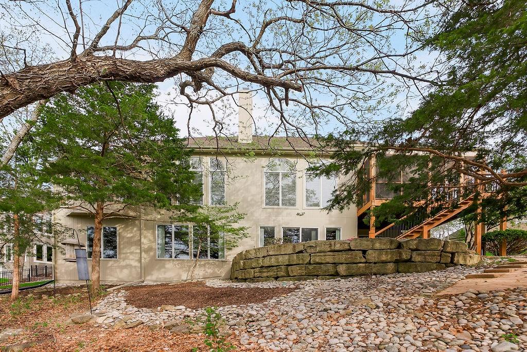 This meticulously maintained 1.5-story home with a finished walk-out basement is perfectly situated at the end of a quiet cul-de-sac. Set on a spectacular wooded lot backing to a scenic valley and greenbelt, the property offers exceptional privacy and serene views, with frequent visits from local wildlife. Main level features an open formal dining room perfect for entertaining large groups, a living room with a wall of windows, hearth room with built-ins and a see-through brick fireplace to the living room, and an updated kitchen (2024) with white quartz and three pantries (one walk-in). The main-floor primary suite offers a bay window, boxed vaulted ceiling with interior lighting, a spa-like bath with separate tub and shower, see-through fireplace to the bedroom, and a huge walk-in closet. Laundry with desk/folding counter off the 3-car garage. Screened deck overlooks private, tree-filled backyard. Upstairs: three bedrooms — two share a Jack-and-Jill bath, one with a private ensuite — plus built-in bookcases in the hall and guest bedroom and easy attic access that could be finished as a loft. Finished walk-out basement includes large game area with wet bar, 5th bedroom, 4th full bath, separate TV room, and patio. Additional highlights: immaculate condition, hardwoods on main level, plantation shutters, central vac, sprinkler system, wired for surround sound on main floor, natural stone landscaping and retaining walls, stamped concrete walkways, exterior paint 2022, dual HVAC units. Enjoy resort-style living in Cedar Creek — one of Kansas City’s finest neighborhoods with access to a 65-acre fishing lake, 3 community pools, lighted tennis & pickleball courts, clubhouse, indoor gym, and miles of walking trails.
