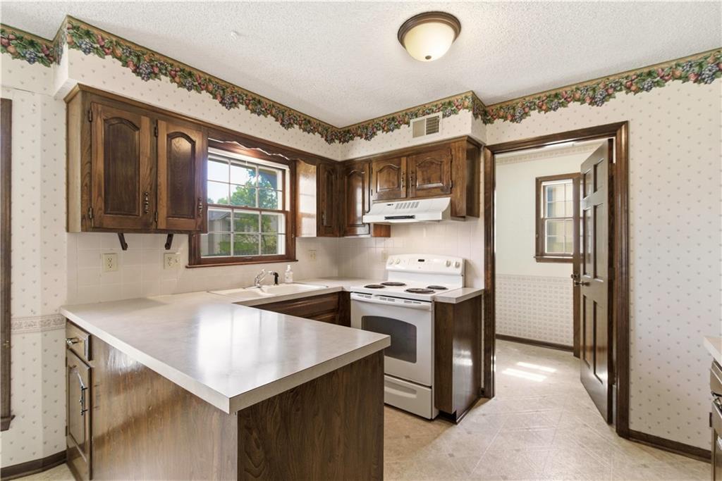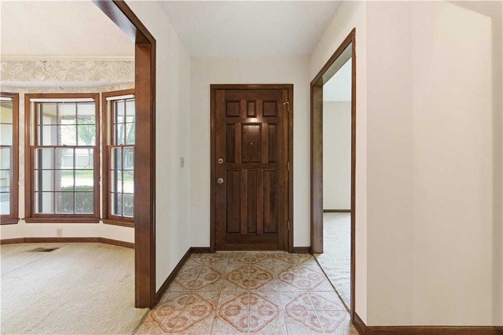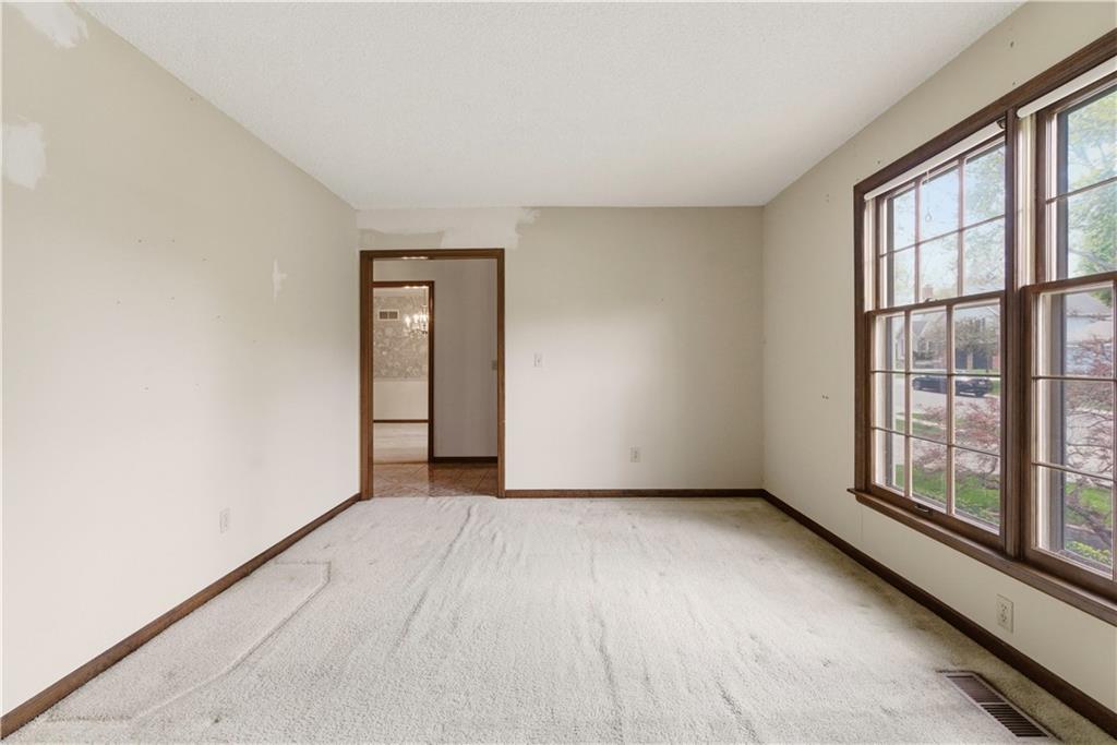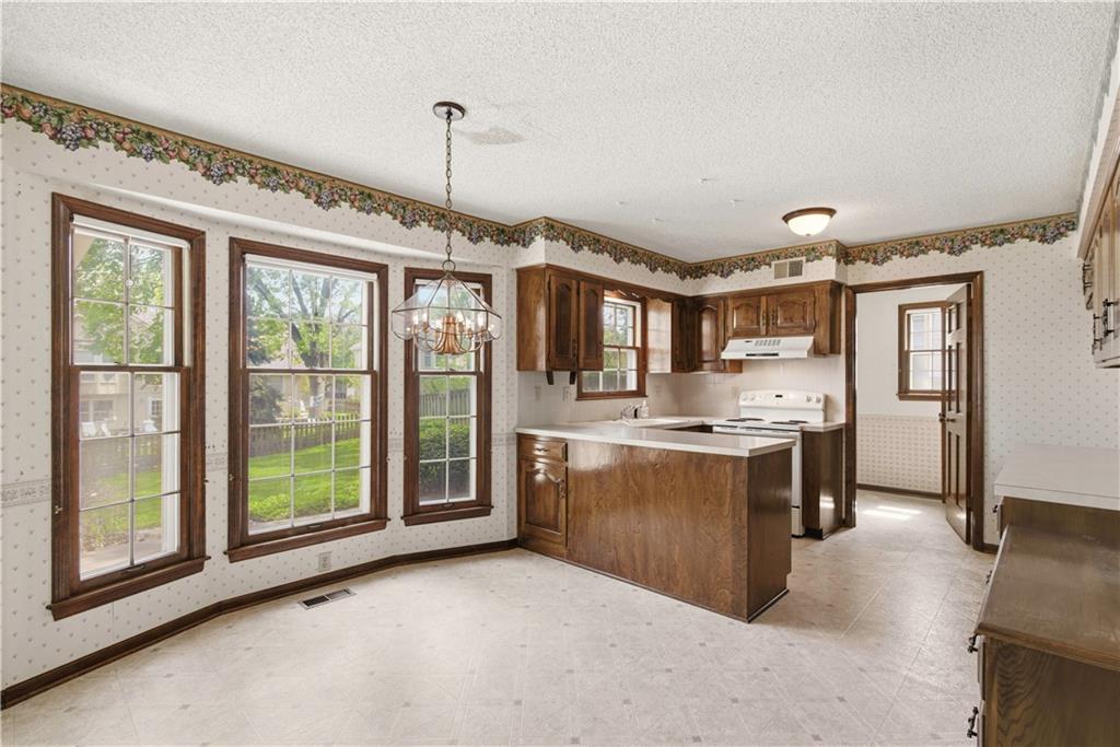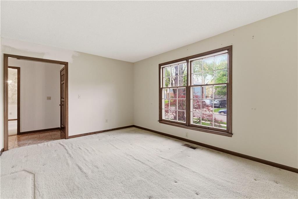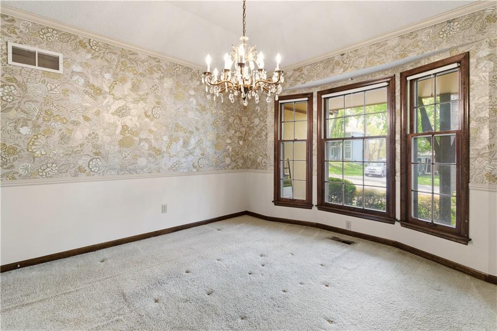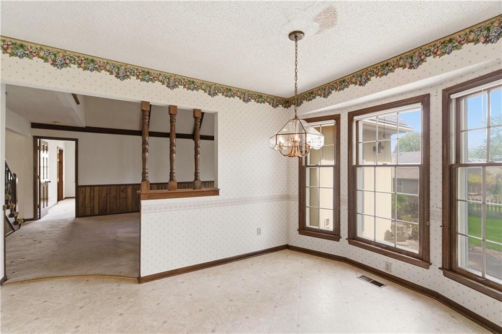 Tucked into a charming, tree-lined neighborhood in Lenexa, this onw owner 1.5 story home is bursting with opportunity and a floor plan that just makes sense. Whether you're looking to personalize your next home or invest in something with upside, this one is ready to shine. Step inside to soaring cathedral ceilings in the great room, creating an airy, open feel that instantly welcomes you in. The main level offers a spacious primary suite along with the convenience of main floor laundry, making everyday living easy and efficient. You'll also find a cozy secondary living room or ideal home office, plus a formal dining room perfect for gatherings and holidays. The eat-in kitchen provides a great foot print for future updates, with plenty of space to create your dream culinary hub. Upstairs, three generously sized bedrooms share a full bath, offering flexibility for family, guests, or additional workspace. Set in an established neighborhood with mature trees and timeless appeal, this home offers the rare combination of solid bones, functional layout, and endless potential. Bring your vision and make it your own