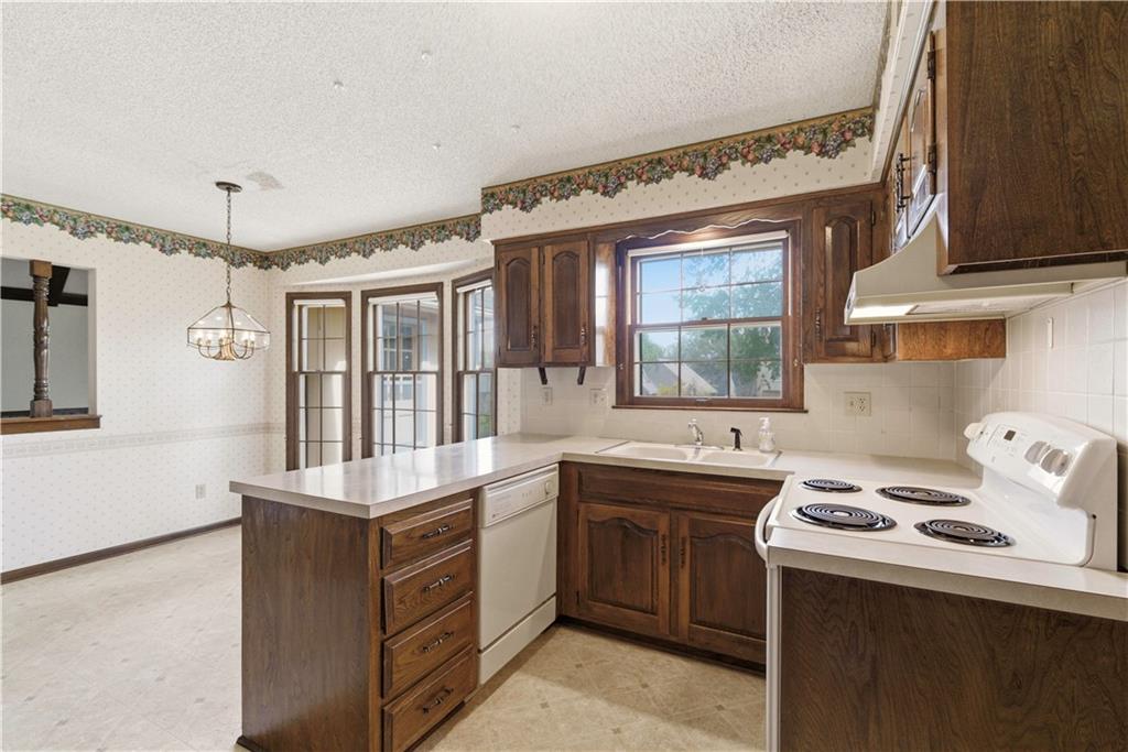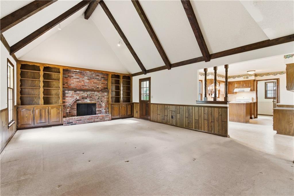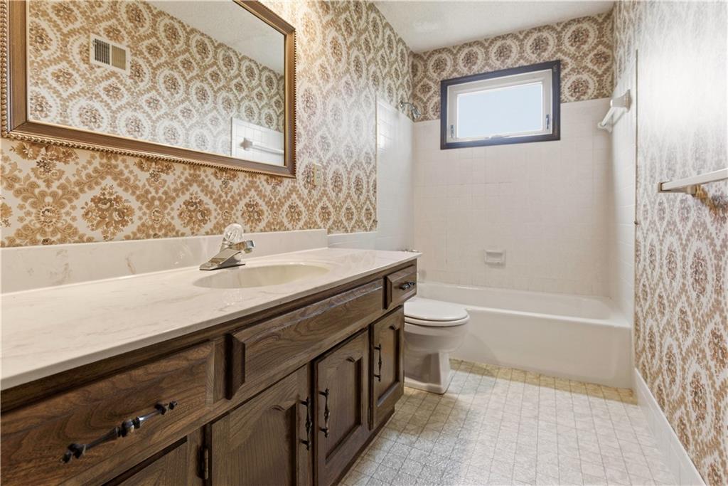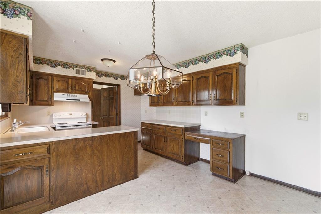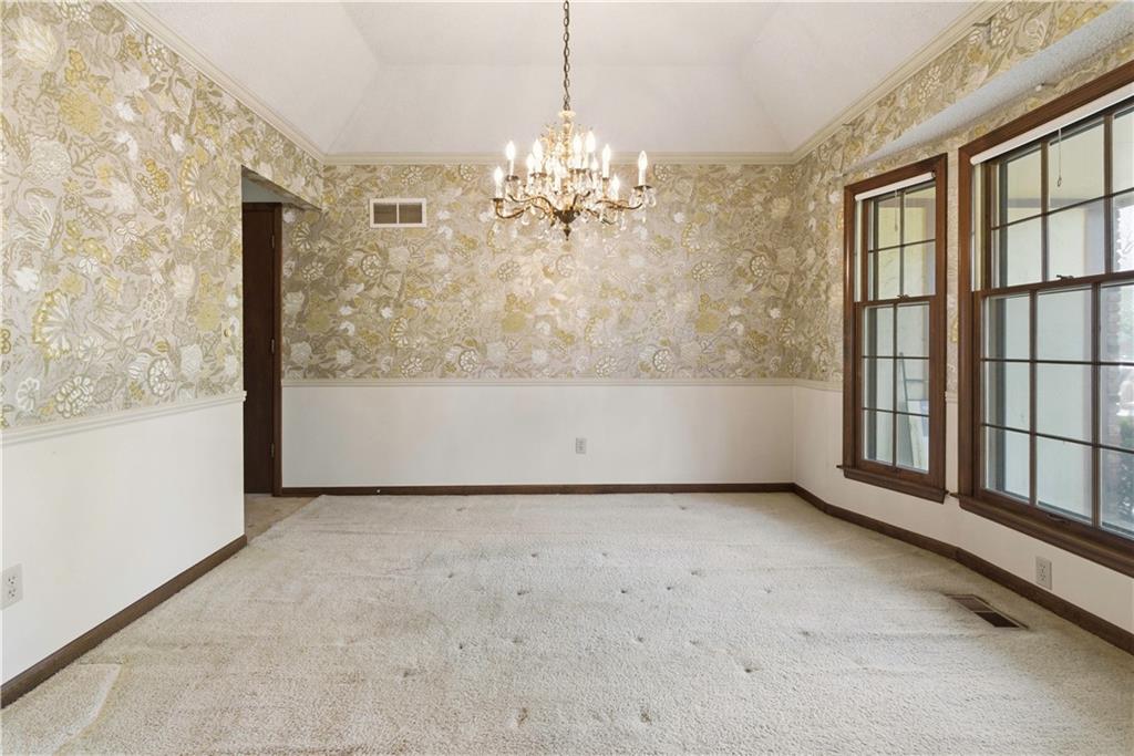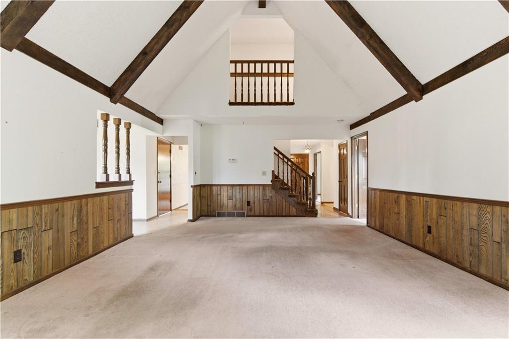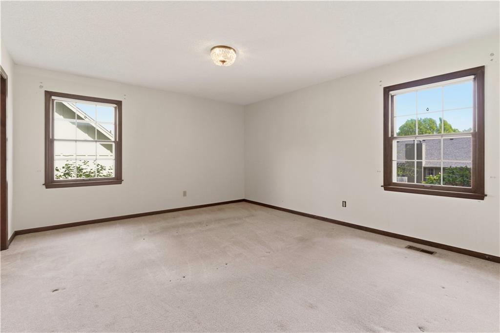 Tucked into a charming, tree-lined neighborhood in Lenexa, this onw owner 1.5 story home is bursting with opportunity and a floor plan that just makes sense. Whether you're looking to personalize your next home or invest in something with upside, this one is ready to shine. Step inside to soaring cathedral ceilings in the great room, creating an airy, open feel that instantly welcomes you in. The main level offers a spacious primary suite along with the convenience of main floor laundry, making everyday living easy and efficient. You'll also find a cozy secondary living room or ideal home office, plus a formal dining room perfect for gatherings and holidays. The eat-in kitchen provides a great foot print for future updates, with plenty of space to create your dream culinary hub. Upstairs, three generously sized bedrooms share a full bath, offering flexibility for family, guests, or additional workspace. Set in an established neighborhood with mature trees and timeless appeal, this home offers the rare combination of solid bones, functional layout, and endless potential. Bring your vision and make it your own