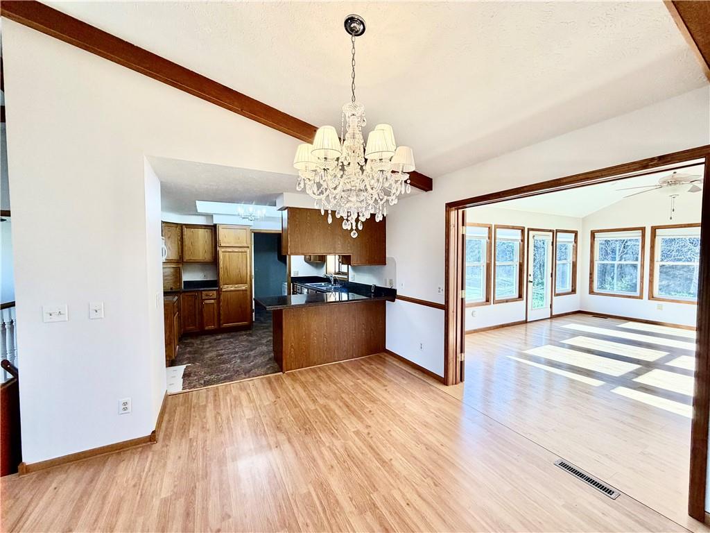 QUIET COUNTRY OASIS!!! Tucked away on approximately 4.7 serene acres, this rare country retreat offers the perfect balance of privacy, comfort, and convenience—with easy access to the main road when you need it, yet a world away from the everyday hustle. Surrounded by mature trees and bordered by a creek winding gently along the back of the property, this peaceful setting invites you to slow down and savor life. Picture warm summer evenings spent on the covered porch, a soft breeze in the air, the sounds of nature all around, or hosting unforgettable gatherings with friends and family under the open sky. Inside, the home is just as inviting. Thoughtfully maintained and designed for both everyday living and entertaining, it features a spacious open-concept layout with a bright kitchen complete with a central island, perfect for casual meals or conversation. A formal dining room adds elegance for special occasions, while the sun room—lined with windows—offers a light-filled space to relax year-round and take in the surrounding views. With 3 bedrooms and 3 full baths, plus main-level laundry and all-level living, convenience is built right in. The fully finished basement expands your possibilities with generous additional space—ideal for a recreation area, guest quarters, or home office. Step outside to enjoy the back patio, wide-open land, and the kind of quiet that’s hard to find. A two-car garage completes the package. Properties like this—offering acreage, privacy, and modern comfort in such a convenient location—rarely come available. Don’t miss your chance to make this exceptional property your own!