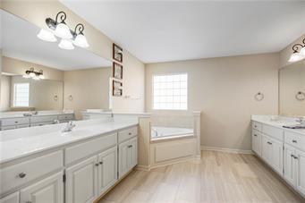 One of the largest floor plans in Benson Place. Check out this 5 BR 3 BA California/Atrium Split home on a corner lot. Three living spaces, updated kitchen, and an oversized master suite with an amazing walk in shower. The lower level offers a versatile family room with bar, full bath, bedroom, as well as a storage room with a sub-basement. The backyard is fenced with a walk out patio off the family room and a deck off the dining/kitchen area. Add the 2 pools and great schools, you will love moving into the well established neighborhood. Call today for your showing.