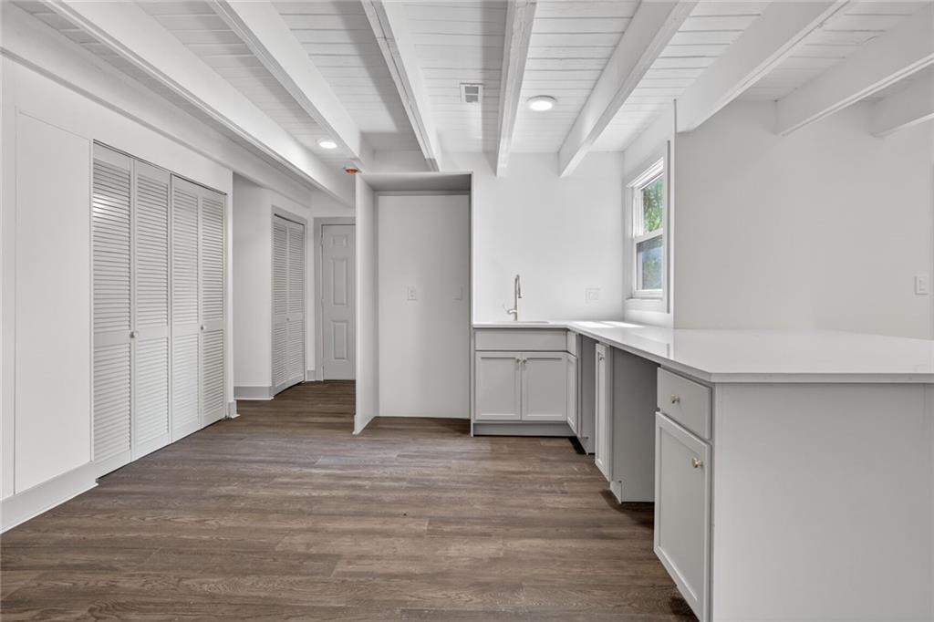 Welcome home to this beautifully completely remodeled 2-bedroom, 1-bath ranch offering convenient one-level living. This home has been taken down to the studs and rebuilt from the ground up — every single thing is brand new: new roof, new electrical, new plumbing, new studs, new siding, new insulation, new HVAC equipment, new granite countertops, and more. Step inside to an open-concept layout featuring luxury vinyl plank flooring and a bright, modern design throughout. The updated kitchen showcases quartz countertops, a large island with extended seating, and a functional layout ideal for everyday living and entertaining. The dining area flows seamlessly to a sliding glass door leading to a spacious patio, and a fully fenced backyard with mature trees—perfect for outdoor enjoyment. This low-maintenance home has been thoughtfully updated with contemporary finishes, fully permitted and inspected by the City of Mission, with all plans and inspections provided. It is move-in ready. Schedule your showing today