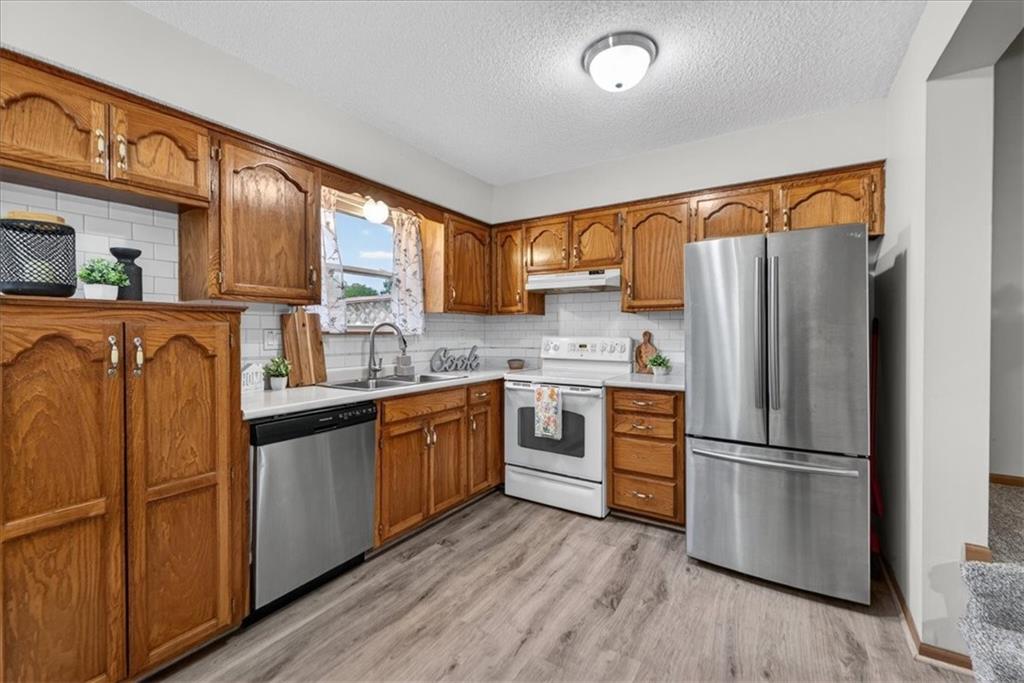 Welcome to 508 NE Knox St, Unit C -- a meticulously maintained, one-owner condo occupied since 1991 and never been smoked in or housed pets. Bright and move-in ready, this 2-bedroom, 2-bath home offers rare extras for the community, most notably a full unfinished basement providing abundant storage or future finished living space, plus attic access for additional storage. The home is all-electric, including a heat pump with central AC. Some upgrades include double-pane thermal-seal vinyl windows (upgraded 2000), and a single-car garage with storage closet and a garage door opener replaced in Fall 2024. The exterior was refreshed in March 2025 with front and back paint and a rebuilt/upgraded patio fence. Interior highlights include updated luxury vinyl plank flooring on the main level, entry, kitchen and bathroom, carpet about 1½ years old on the living area, stairs and upstairs landing, and upgraded lighting and a ceiling fan in the living room. The kitchen got new countertops and a backsplash in 2025, and features a pantry with pull-out drawers, insulated pleated shades on the dining/kitchen windows, and stainless steel refrigerator and dishwasher. The spacious master suite on the second floor includes a large closet and a convenient walkthrough from the master to the bathroom into the laundry/tub area and into the second bedroom, offering an efficient, flexible flow. Ideally located in Blue Springs with close proximity to shopping, dining, parks and major roadways, this well-cared-for unit combines practical upgrades and thoughtful ownership, an opportunity not commonly available.